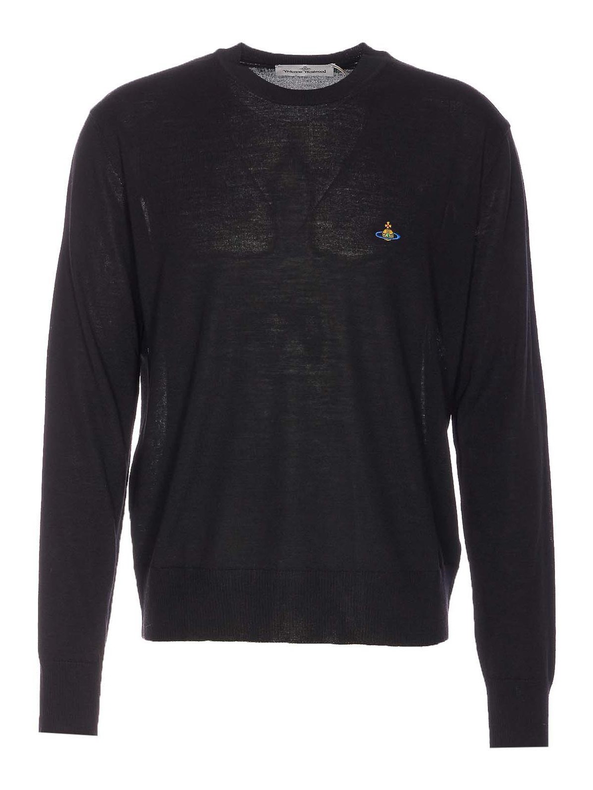 Vivienne westwood black alex crewneck, long sleeves, embroidered orb logo detail on the front