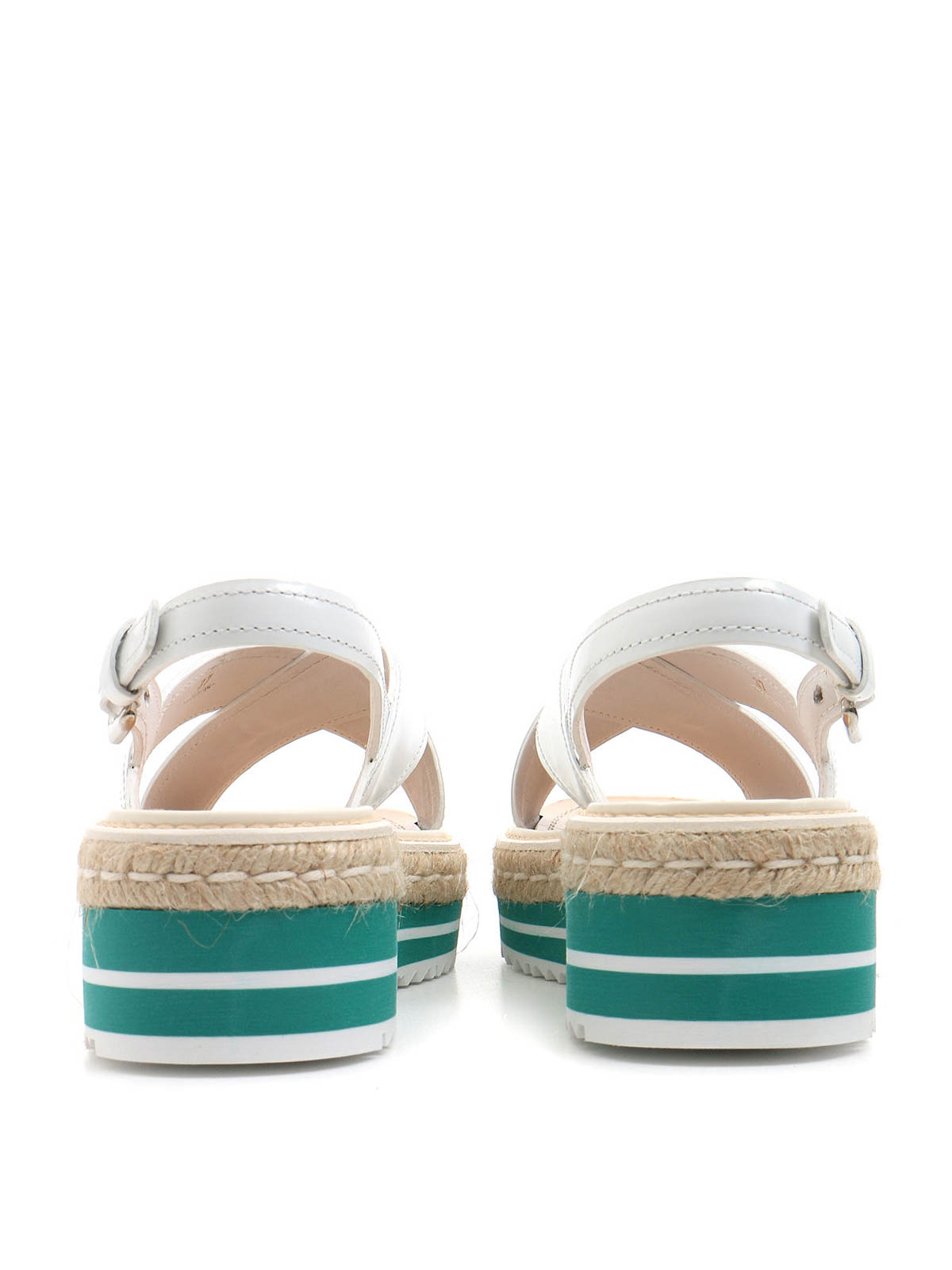 Criss cross brushed leather sandals featuring adjustable ankle strap, jute wedge and contrasting rubber sole.