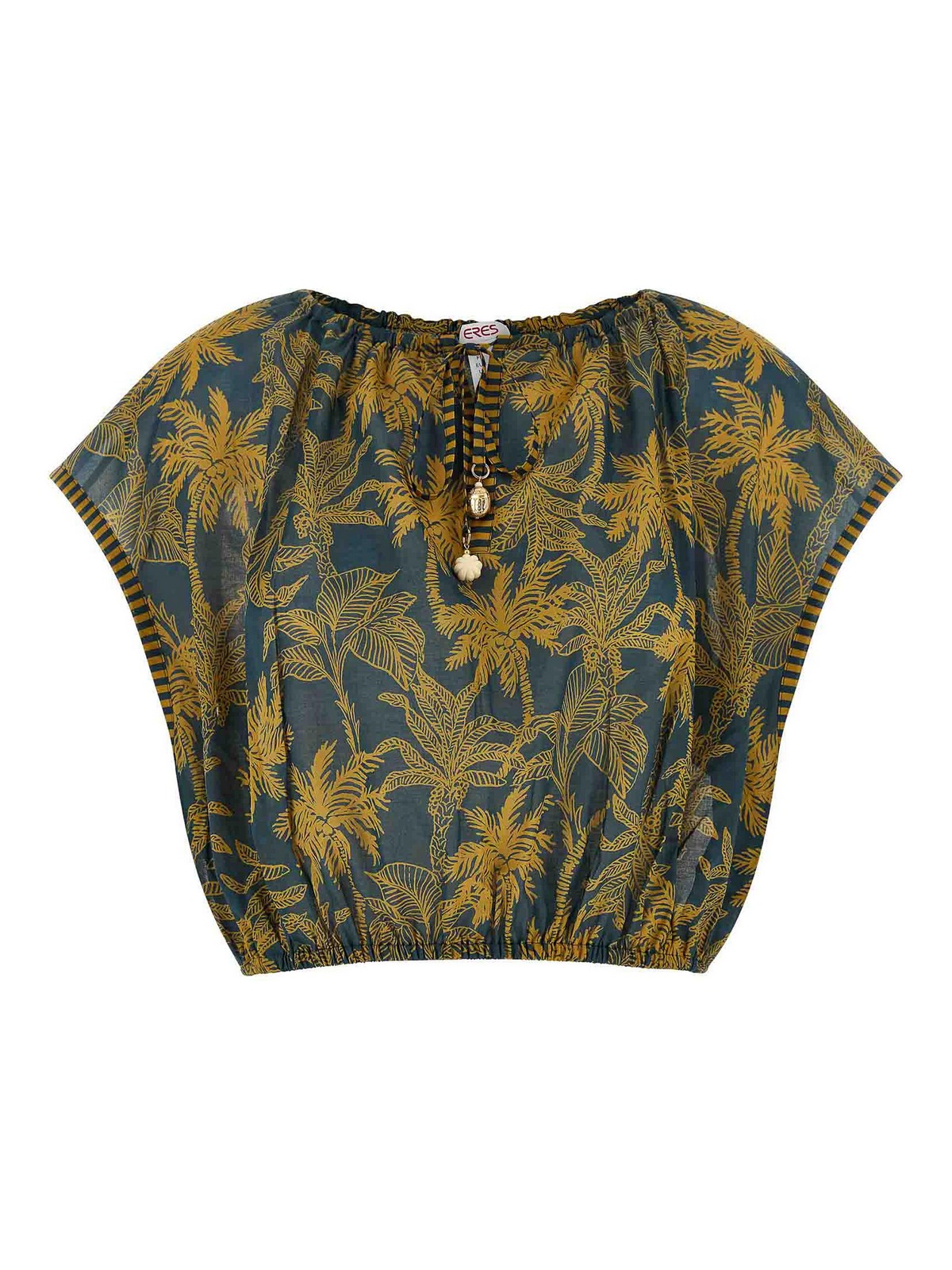 crocodile' crop top in 'imprim voyage ocan' patterned cotton voile with round neckline with drawstring, short sleeves, elastic at the hem.