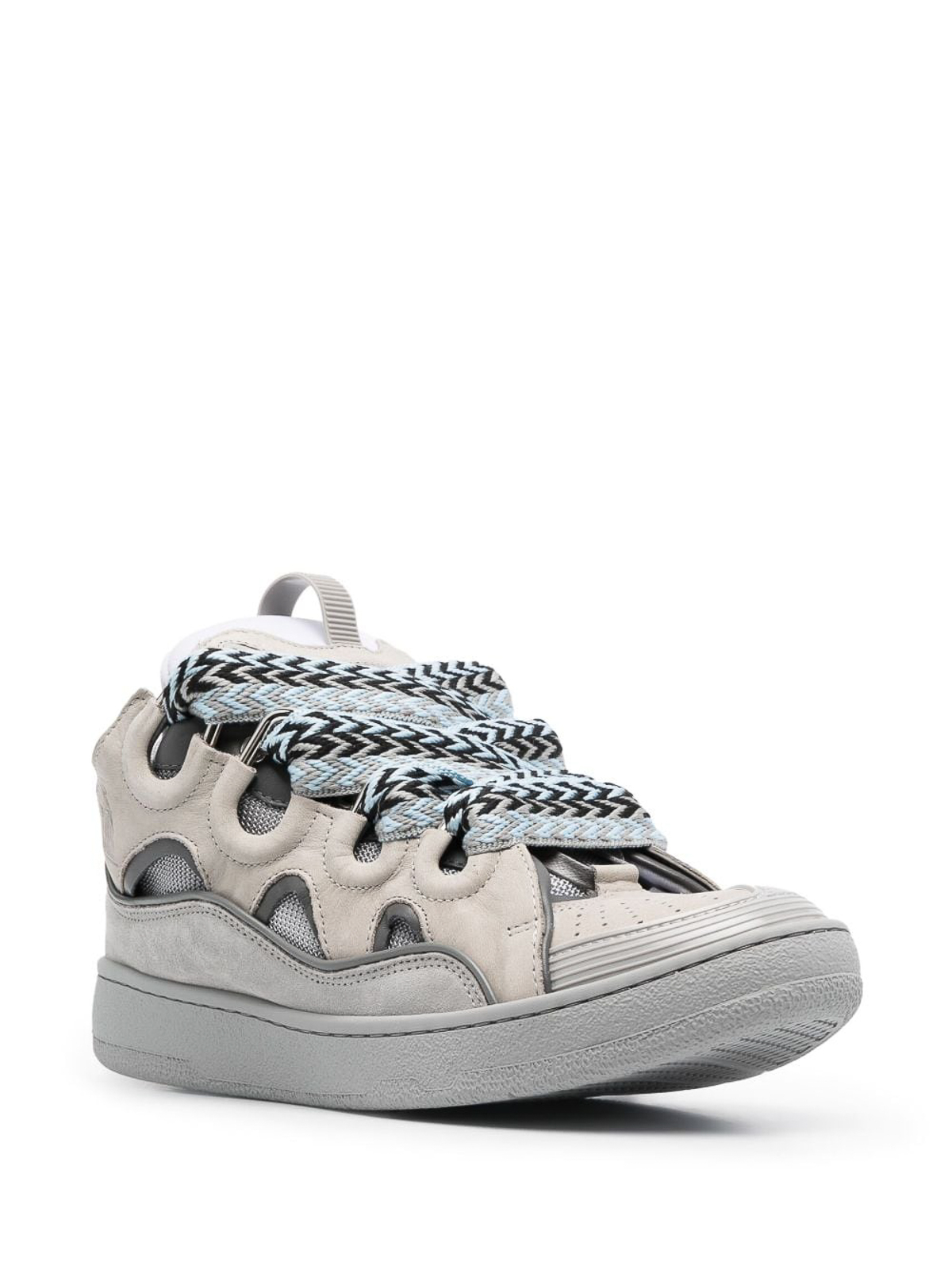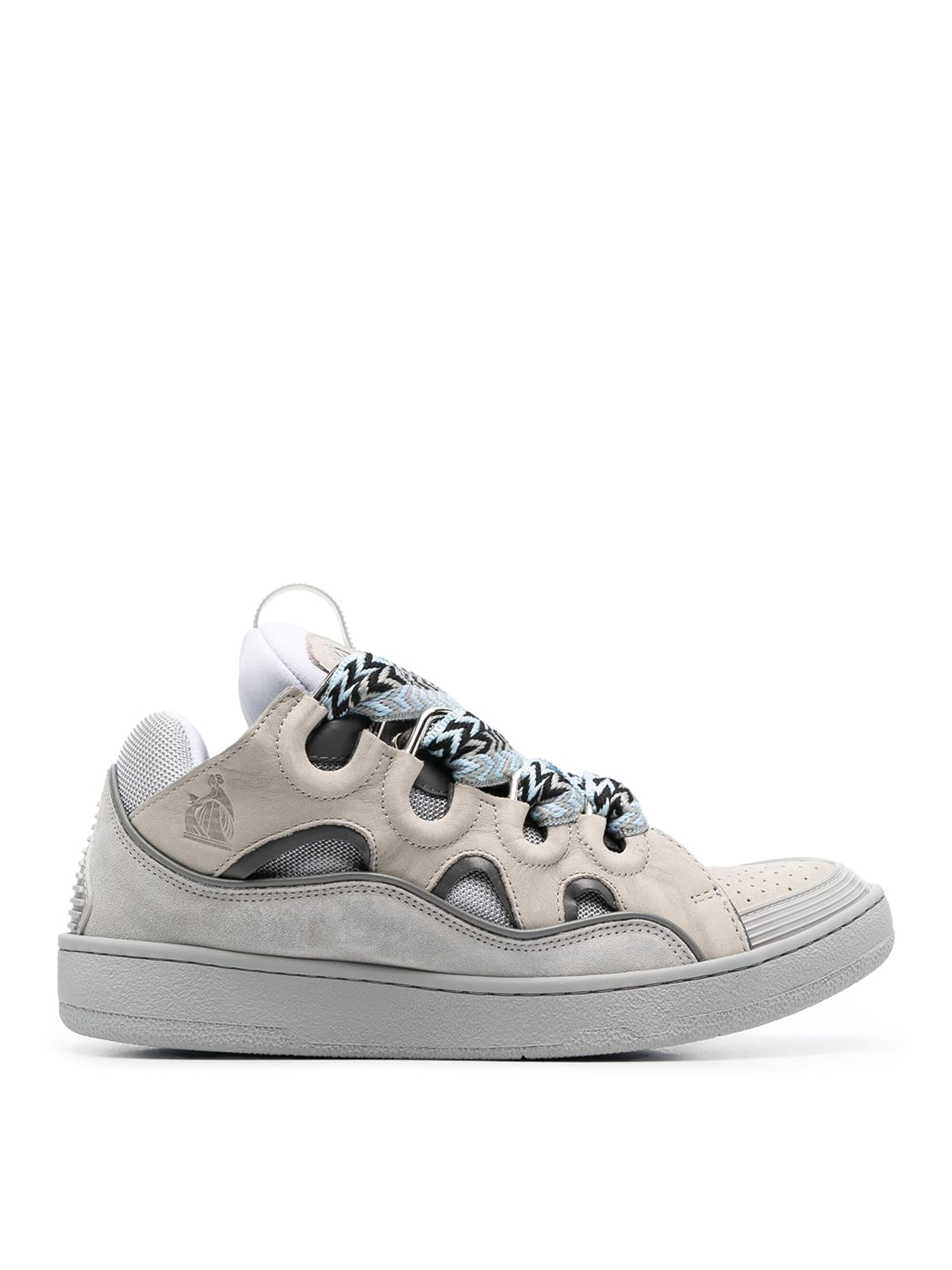 Curb lace-up sneakers by Lanvin with multi-panel design in gray calfskin lace-up front closure rounded and flat toe