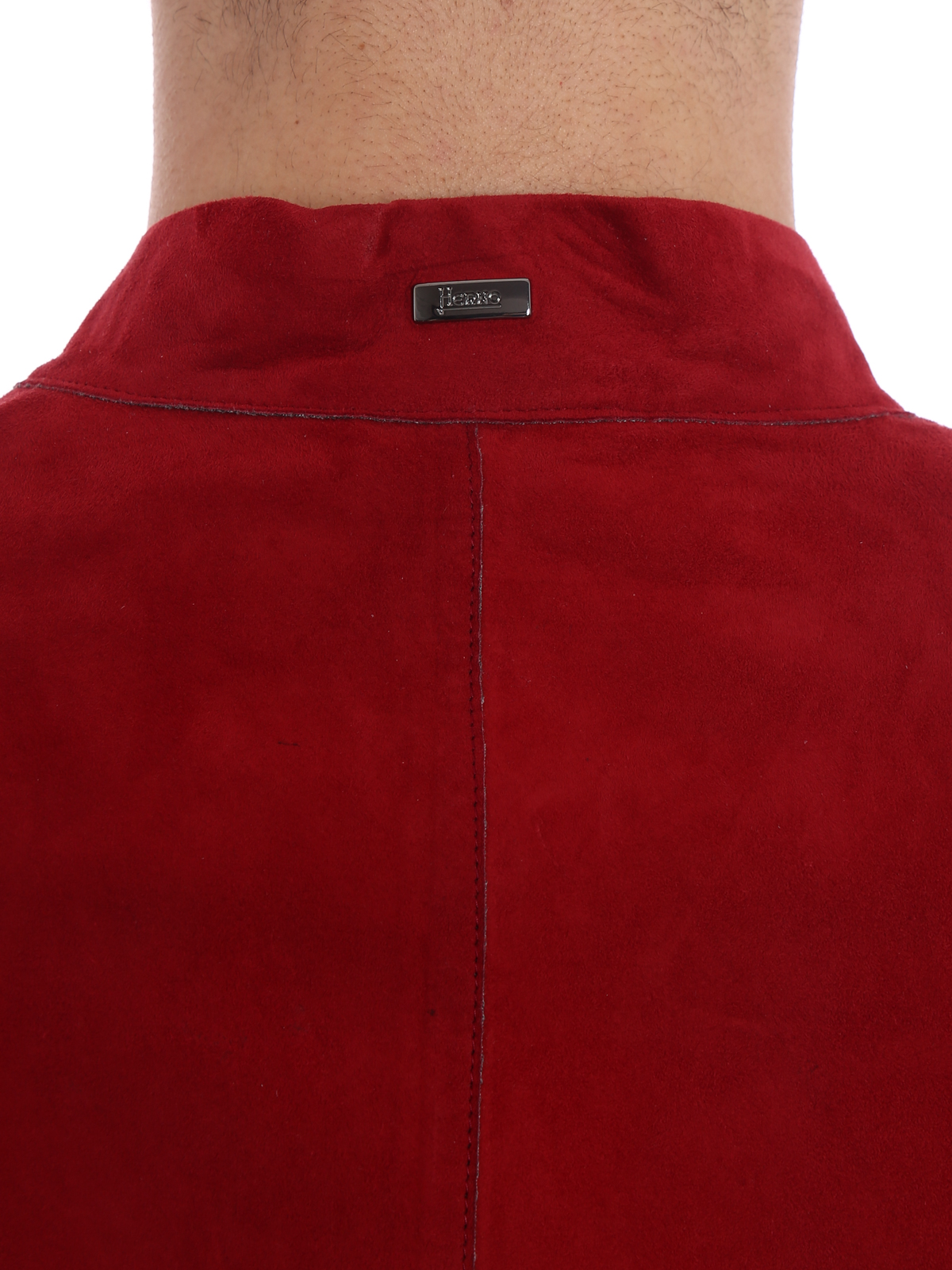Soft suede bomber jacket detailed with two front welt pockets, two-way zip closure, rib knitted cuffs and bottom, melange grey interior.