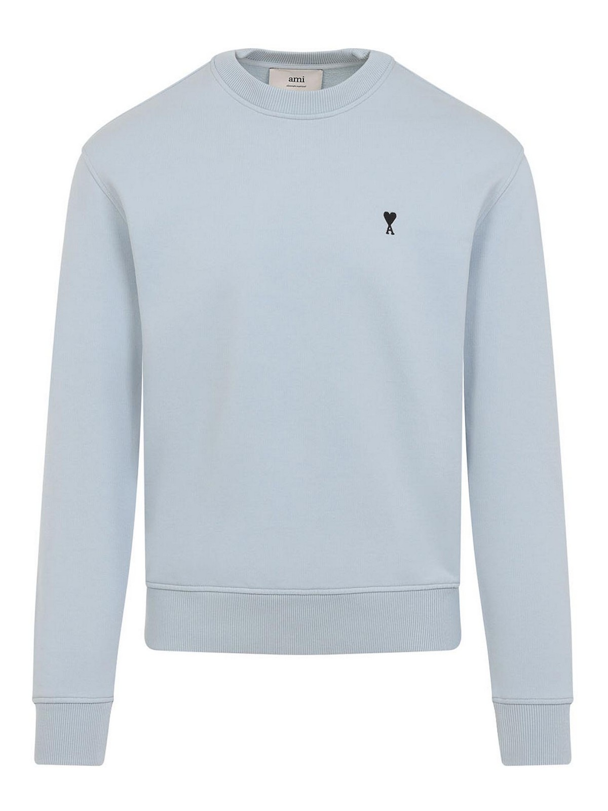 Ami de coeur light blue cotton sweatshirt. light blue cotton, round neckline, long sleeves, contrasting logo embroidery on the breast, ribbed edges, straight hem.