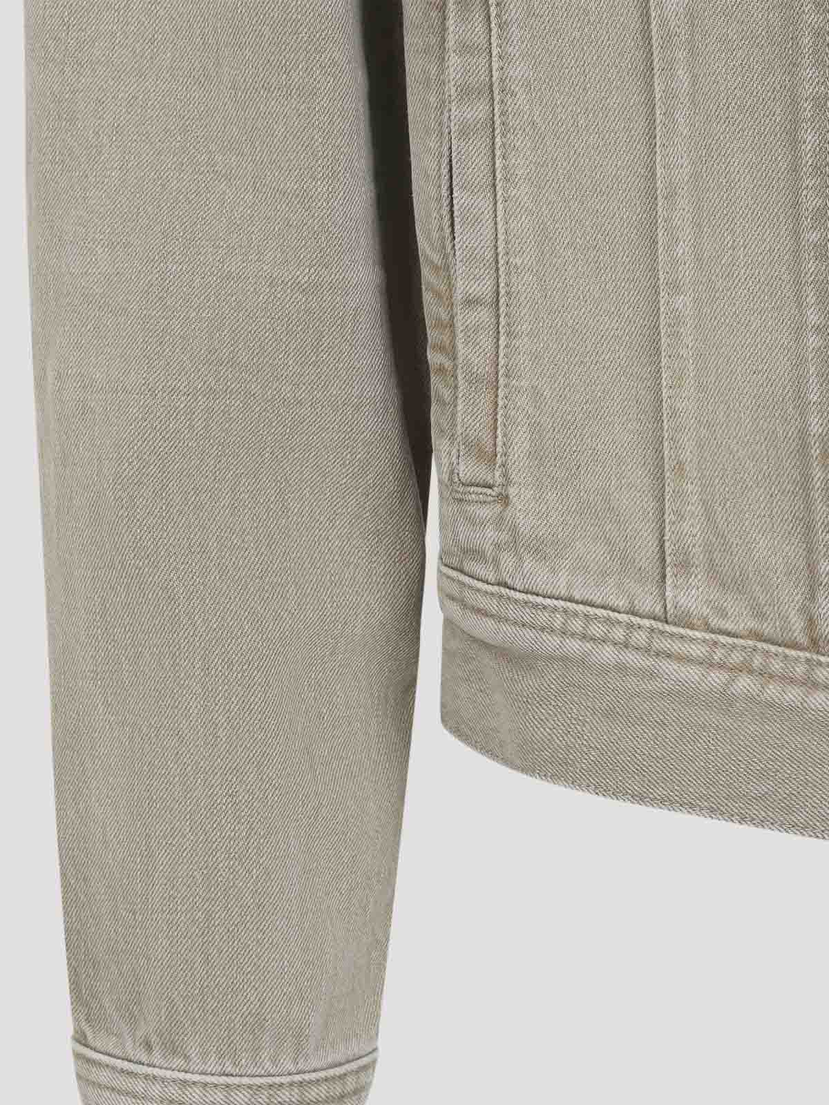 Tom ford washed sand beige cotton denim jacket. pure washed sand beige cotton jacket. pointed collar, front buttoned fastening, chest flap buttoned pockets, side lettering logo, side pockets, long sleeves, buttoned cuffs, straight hem.