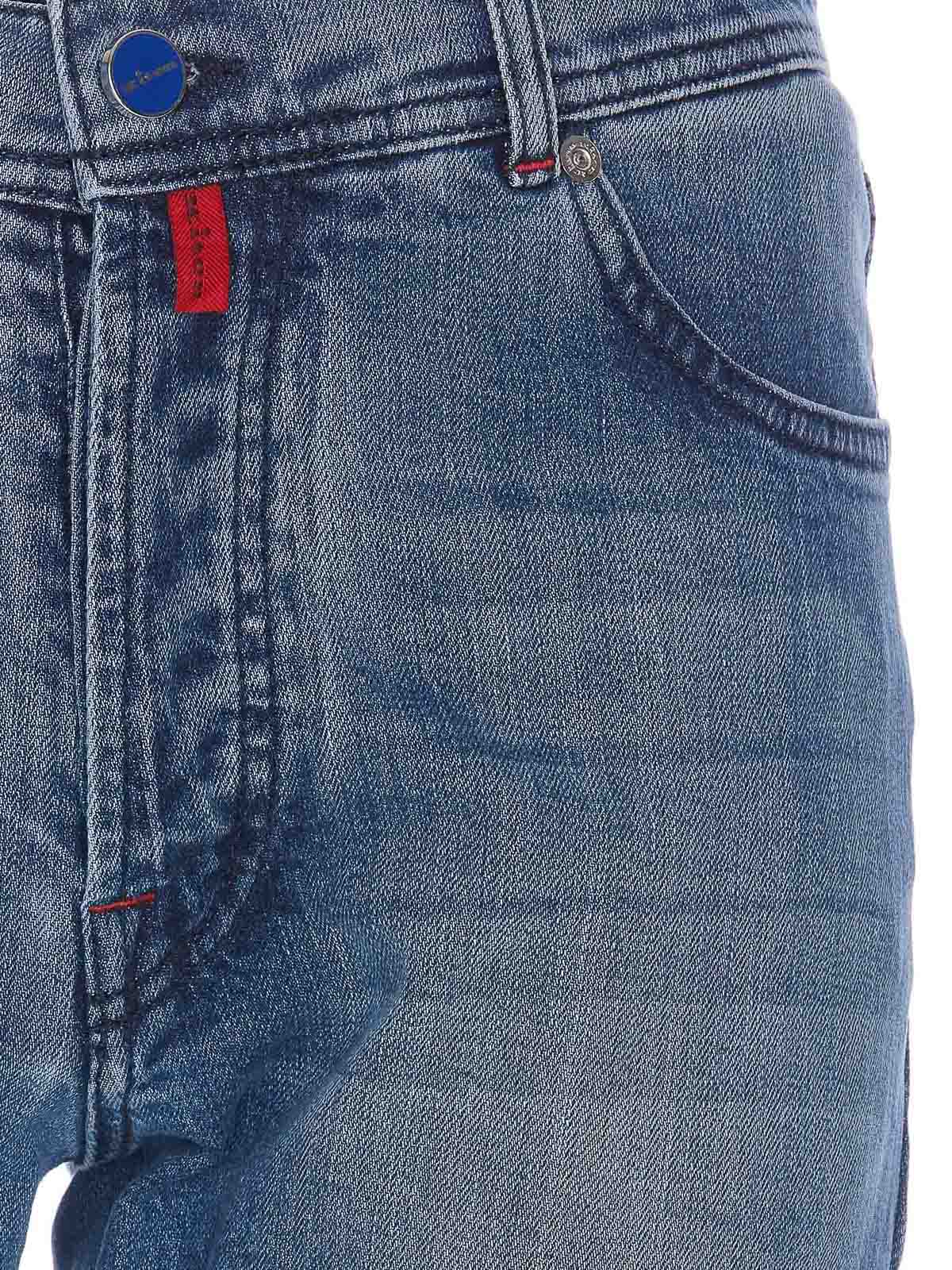 Kiton denim jeans with frontal buttons pockets skinny model patch logo on the back