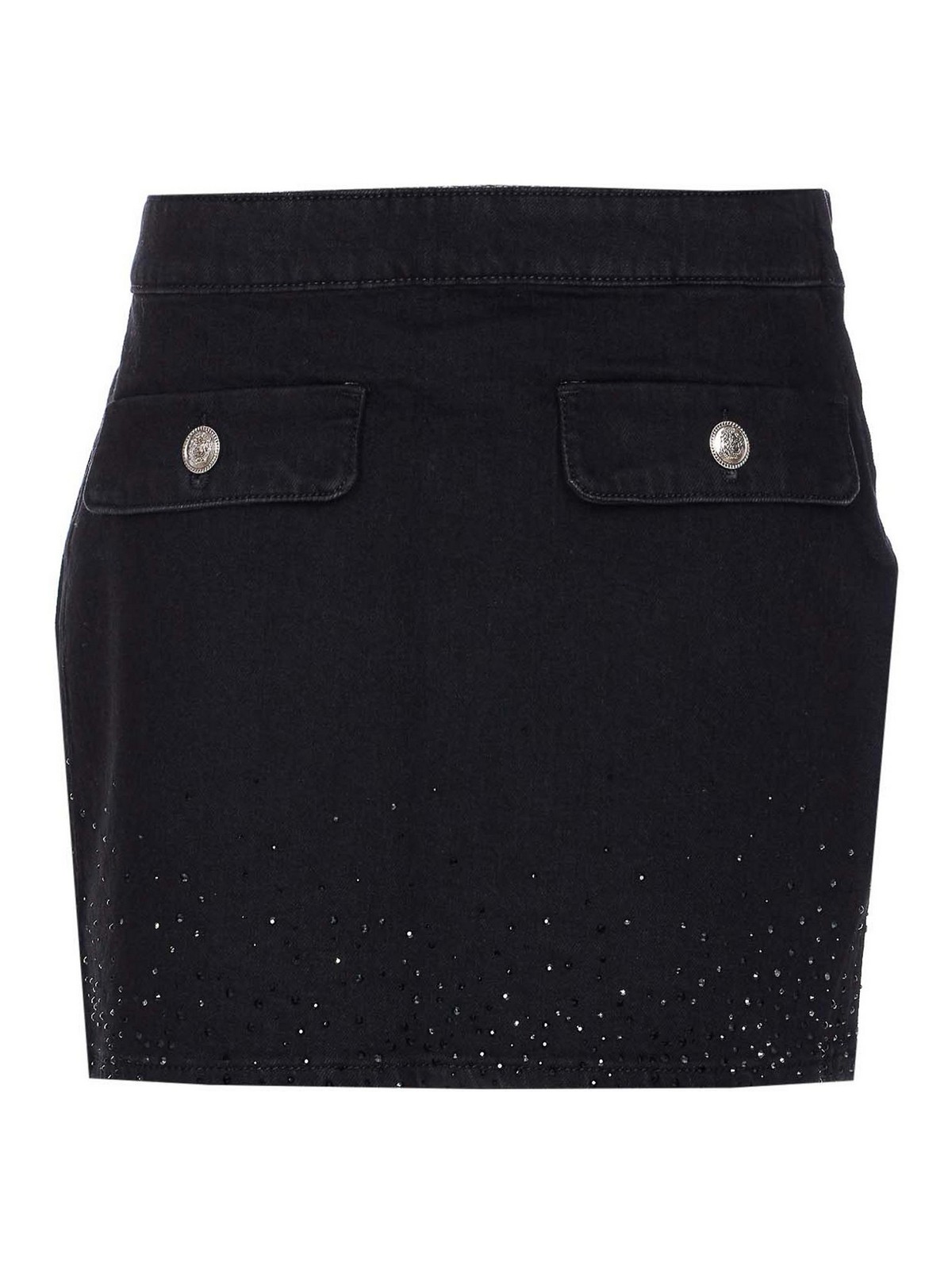 Liu jo black denim mini skirt,lateral zip closure, frontal pockets, crystals on profiles