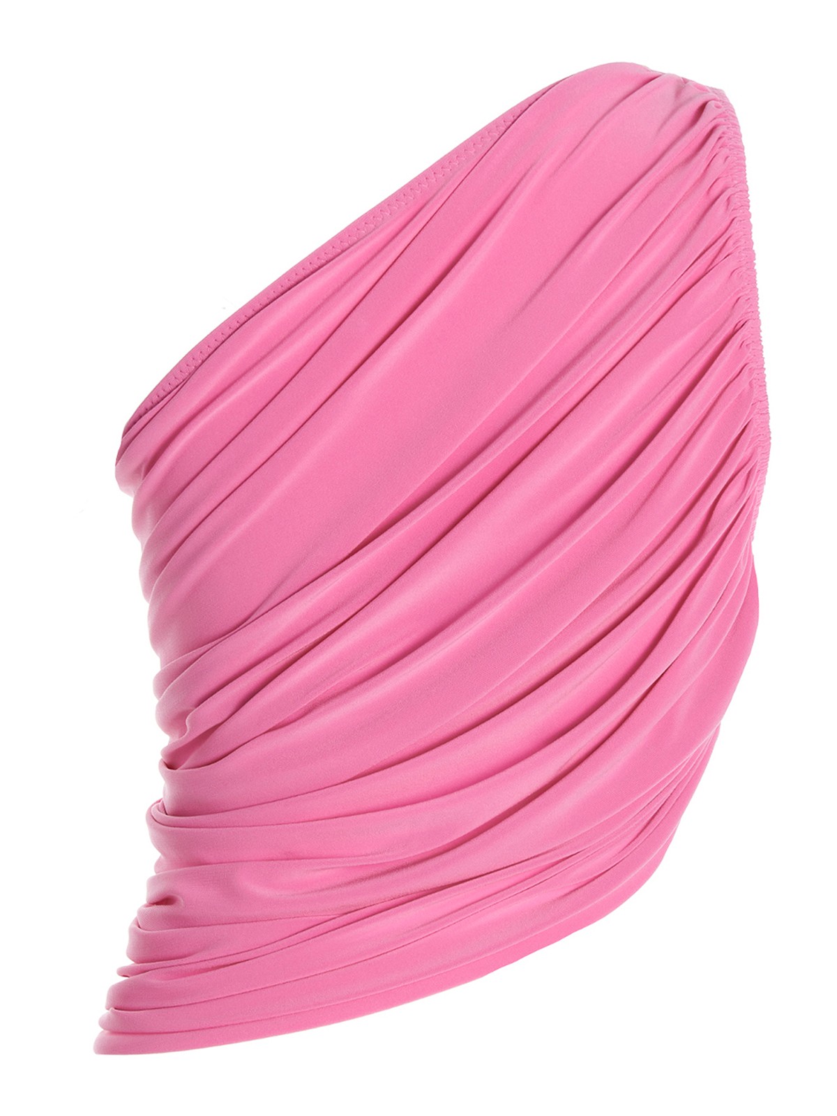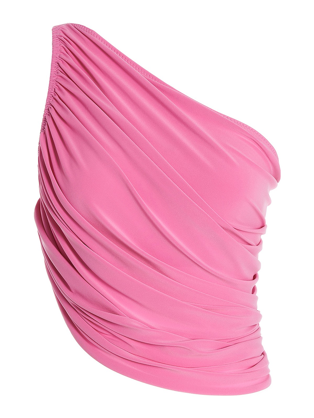 Diana' one shoulder top crafted in a stretch fabric draped with asymmetric hem a cropped style