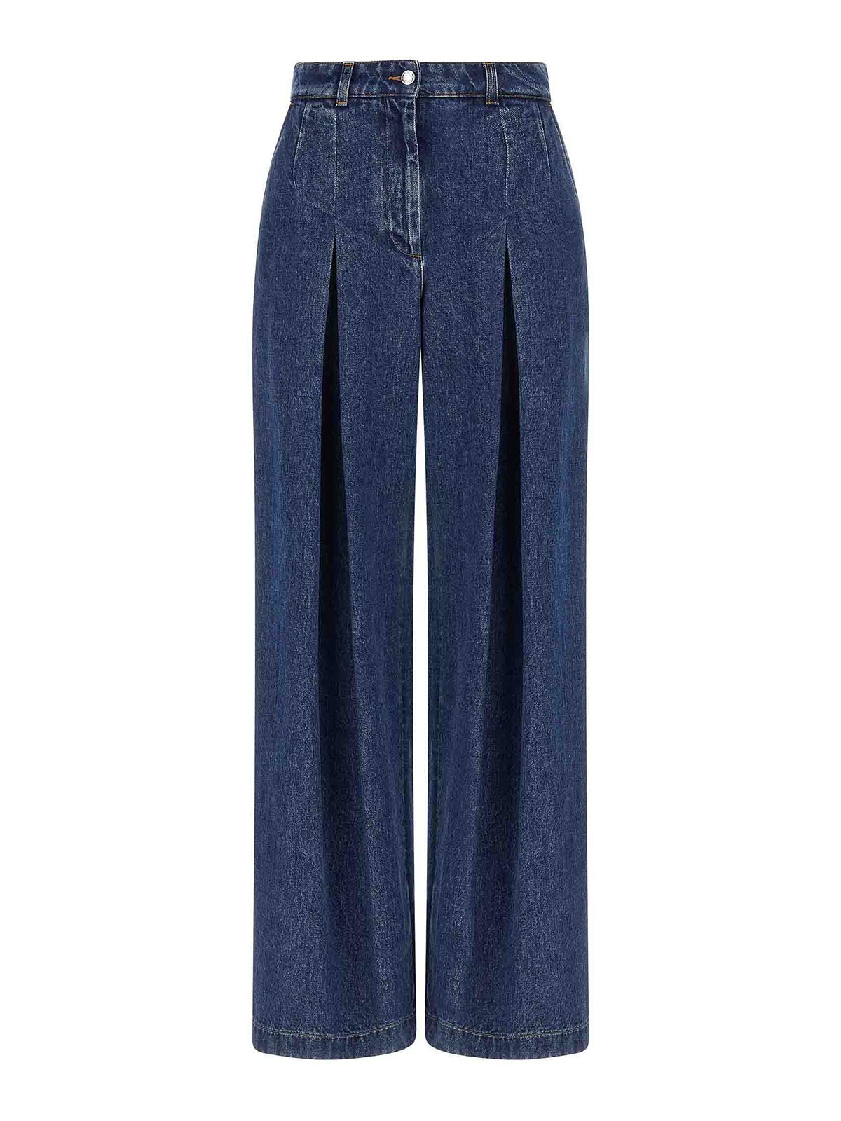 Cotton denim jeans with stitching dolce waist wide leg with pinch and gussets zip and button five pockets