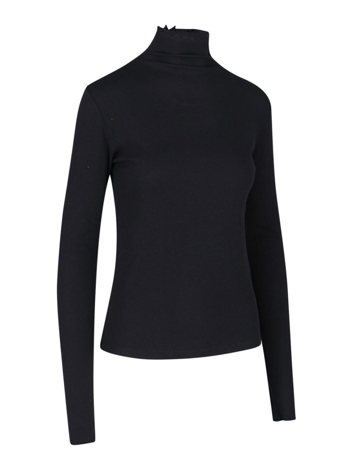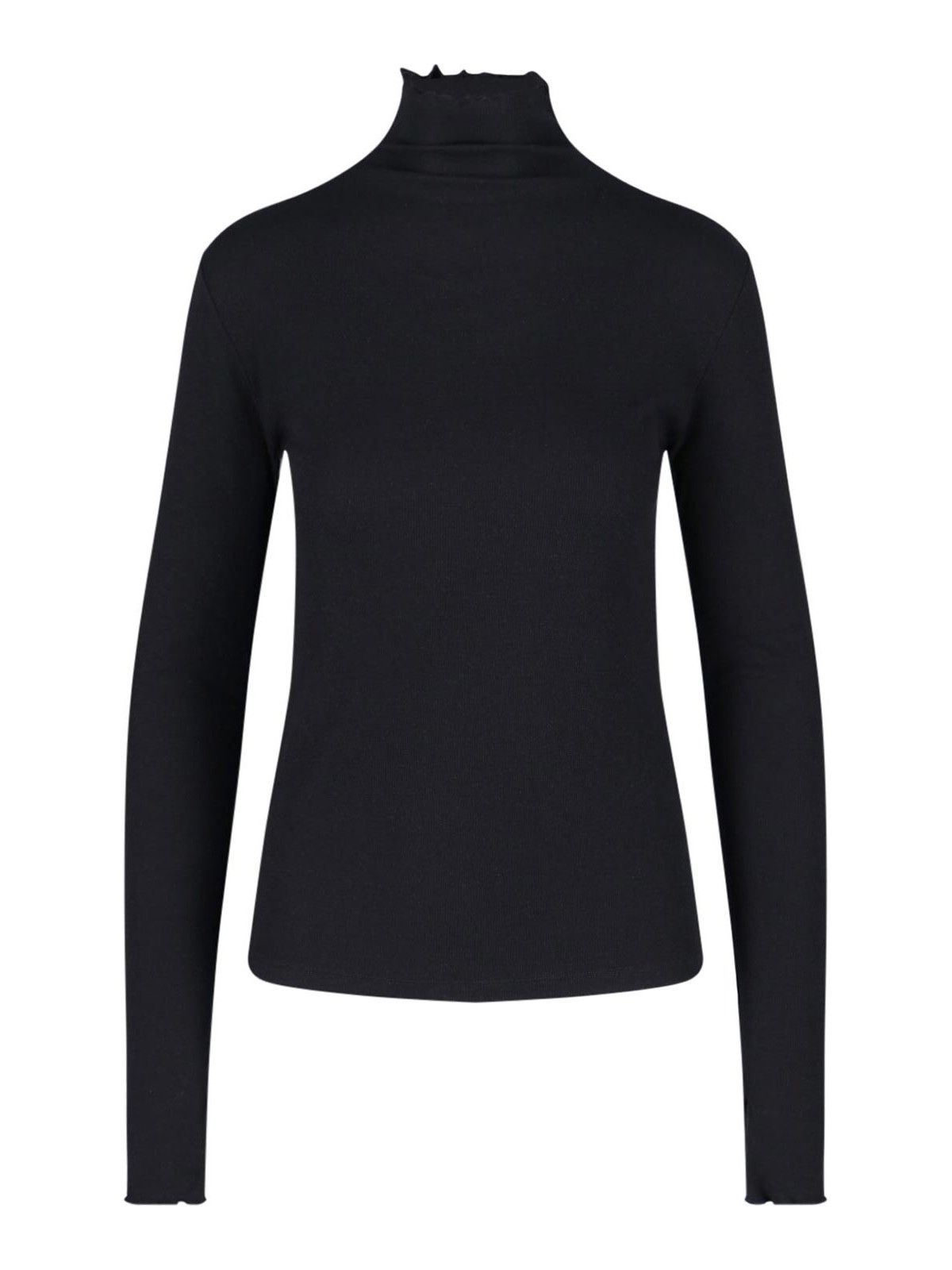 Basic filippa k turtleneck in black ribbed fabric high neck cut out details cuffs straight hem