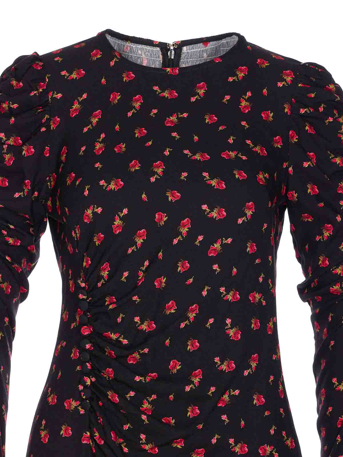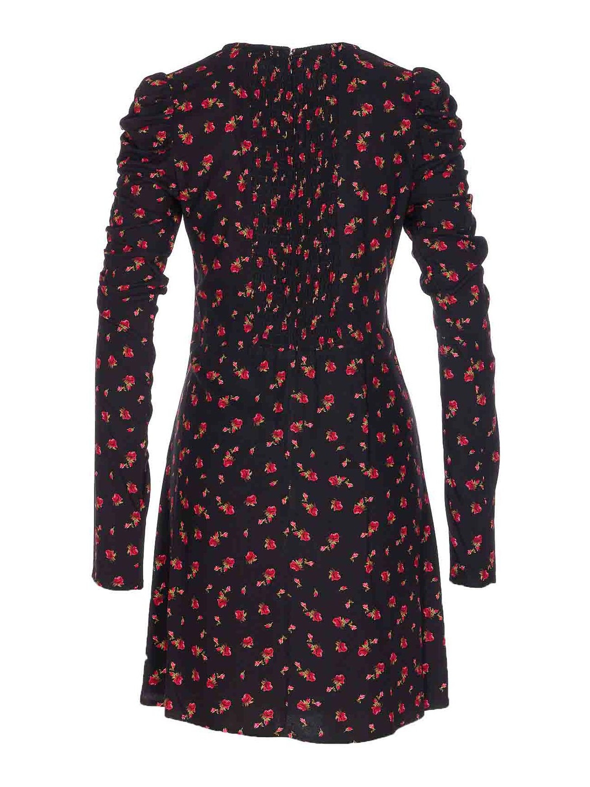 Mar de margaritas black dora dress, crewneck, zip closure on the back, long sleeves, floral print