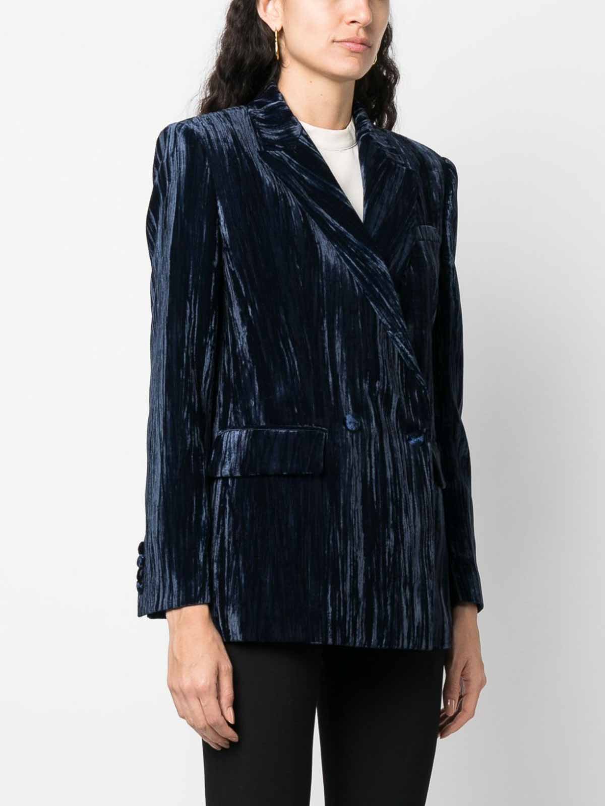 imperial blue double-breasted blazer from dondup featuring fully pleated notched lapels double-breasted button long sleeves buttoned cuffs chest welt pocket two side flap pockets english rear vents and straight hem size it