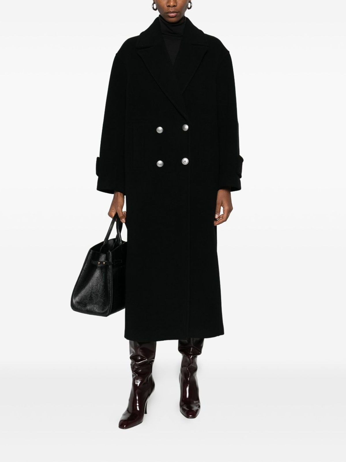 Black double, breasted 'camembert' coat from pinko featuring belted sleeves