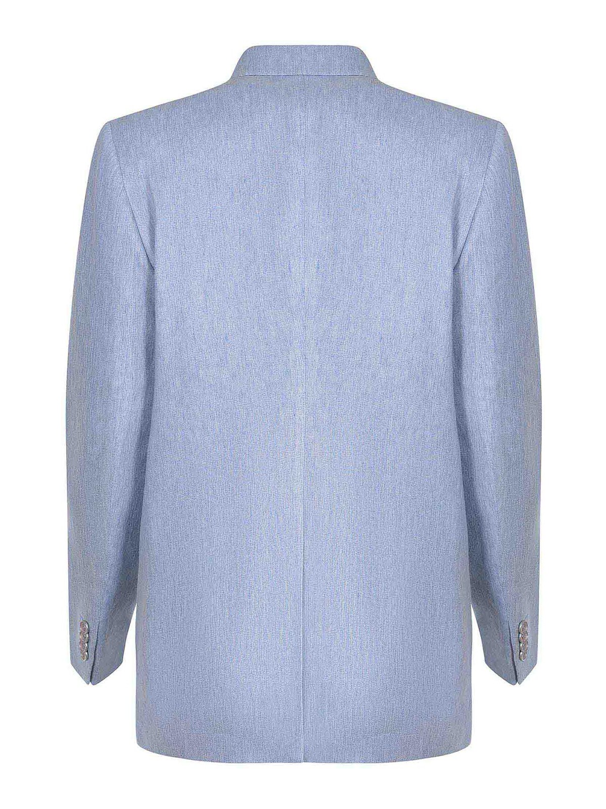 Tagliatore j-jasmine double-breasted jacket made of light blue linen blend, notched lapel. chest welt pocket. long sleeves. cuffs with four buttons, double-breasted. two-button closure, side flap pockets. center vent at the back. lined, lining 100% cupro 58% linen, 40% cotton, 2% elastane made in italy
