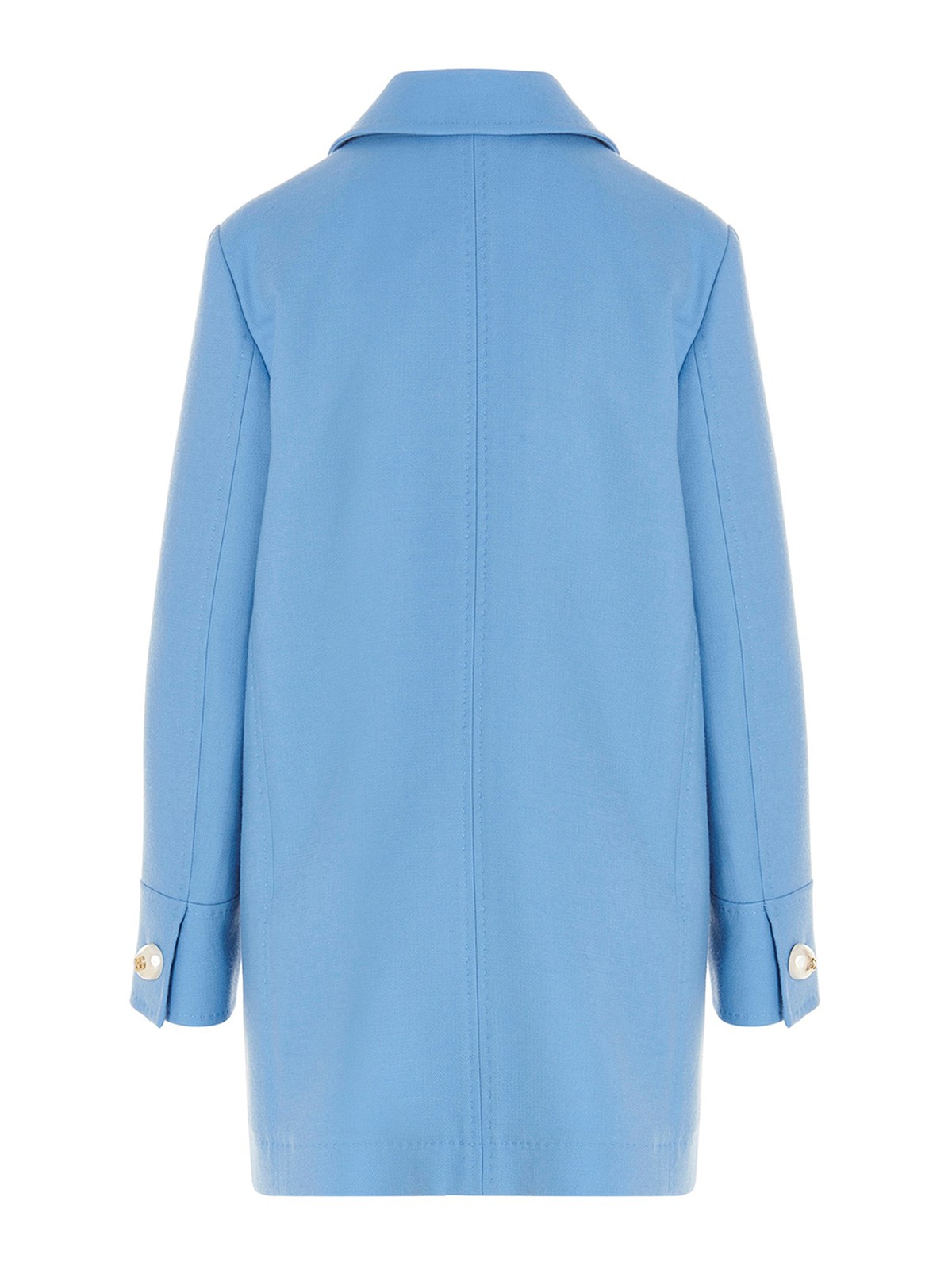 Double-breasted wool coat with jewel pearl logo buttons shirt-style collar long sleeves and ticket pocket
