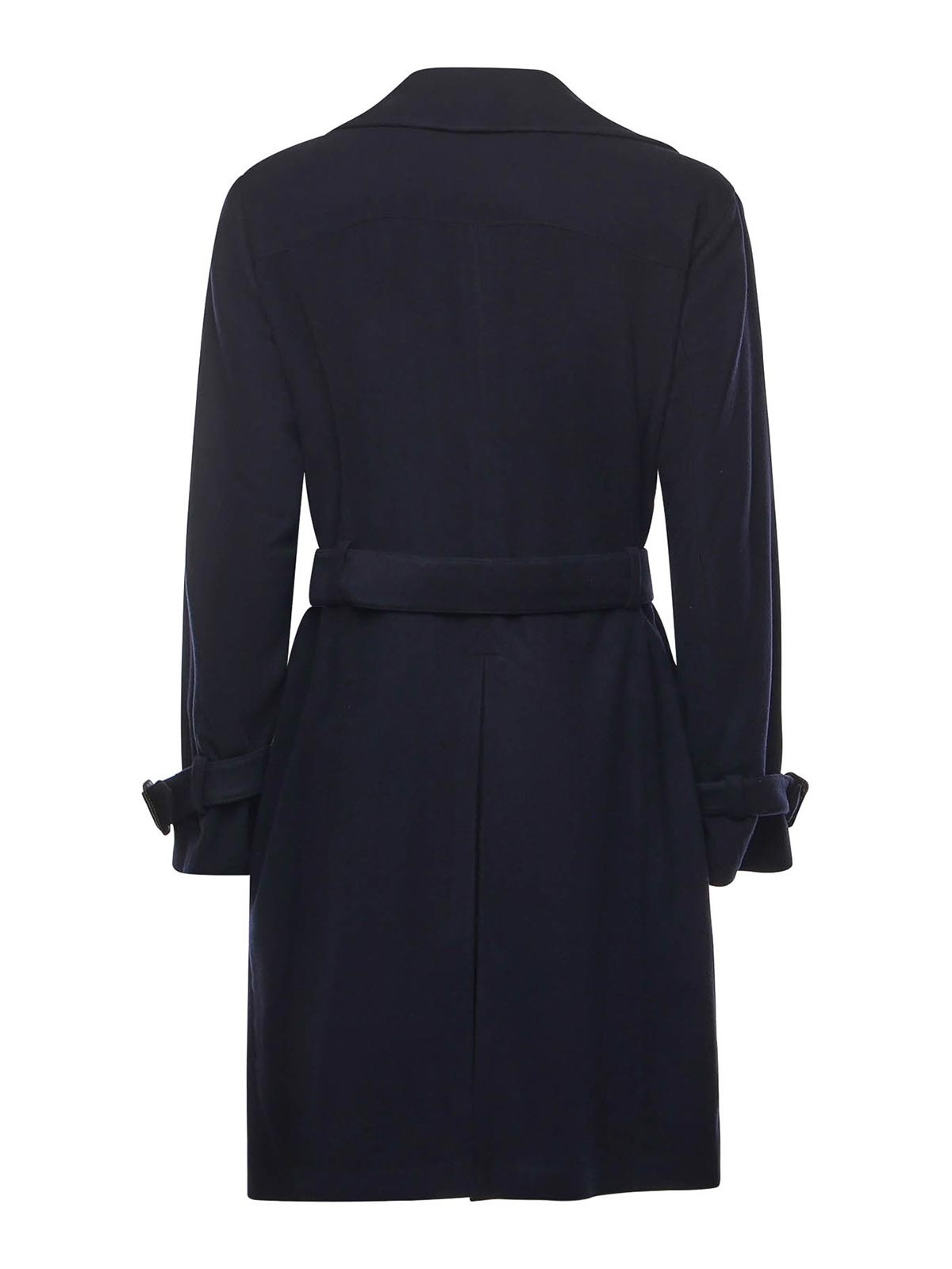 made of pure wool, tone-on-tone belt, 2 side pockets, regular fit, made in italy, color: blue