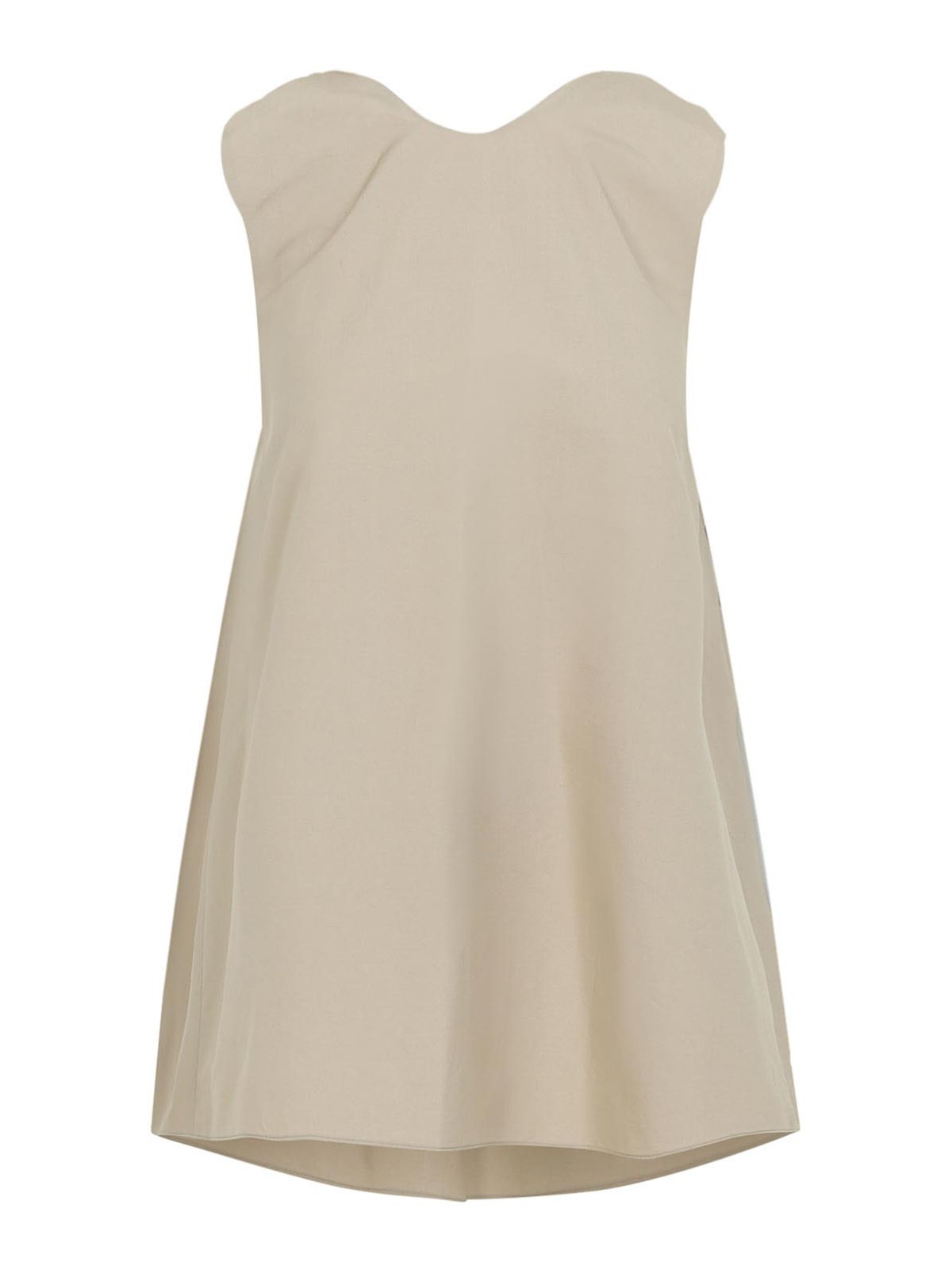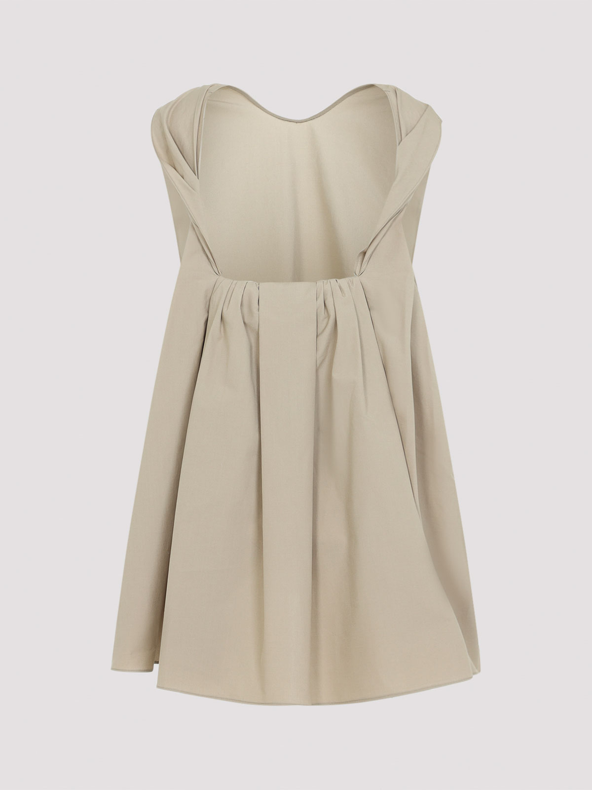 Carven draped back beige cotton top. sleeveless top crafted from light beige cotton, featuring a round neckline, an open back with a draped panel, a concealed side zip fastening, and a flared hem.