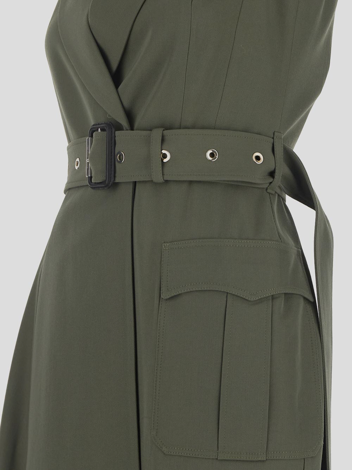 Alexander mcqueen asymmetric midi dress in military green wool/cotton blend