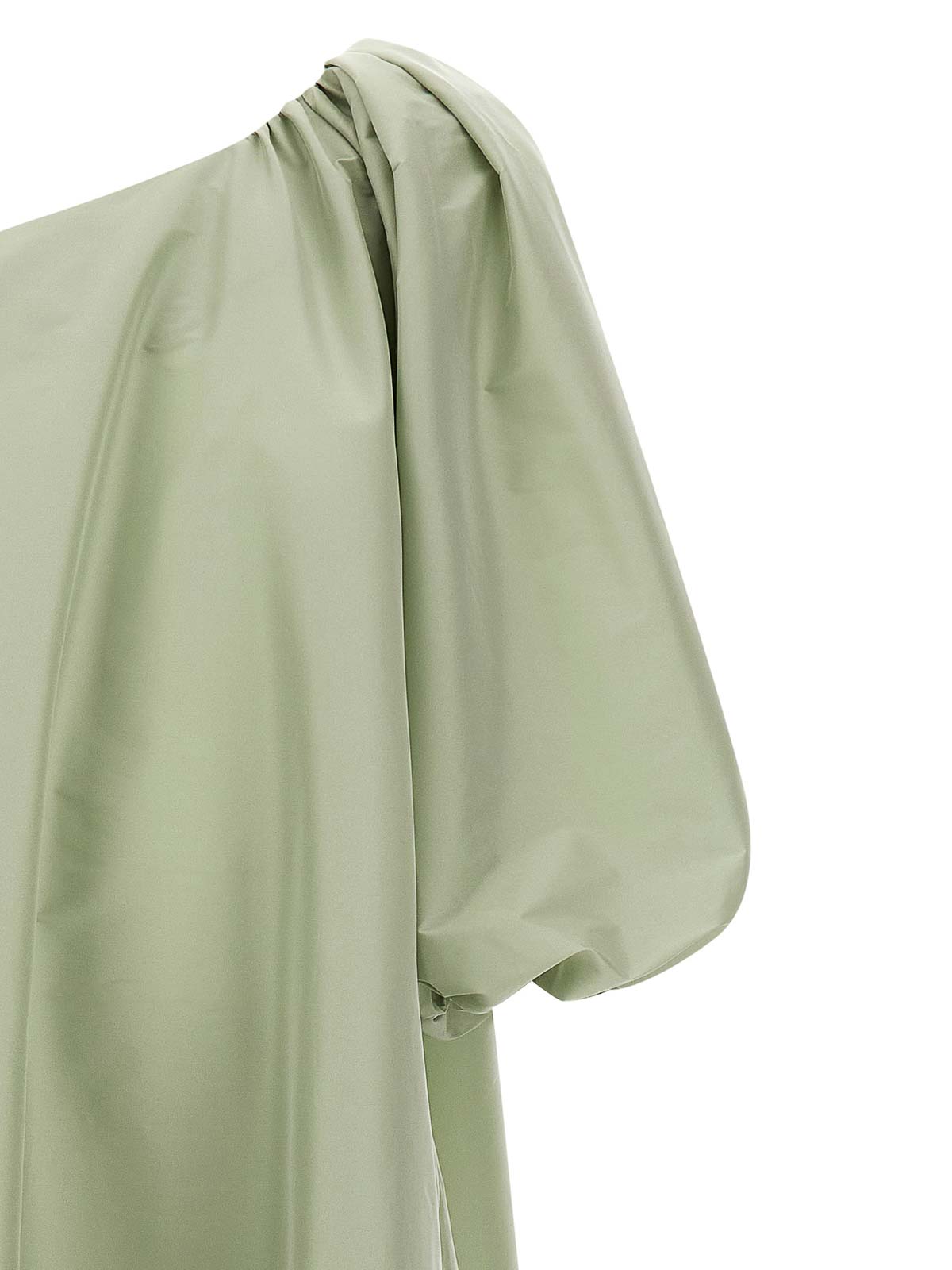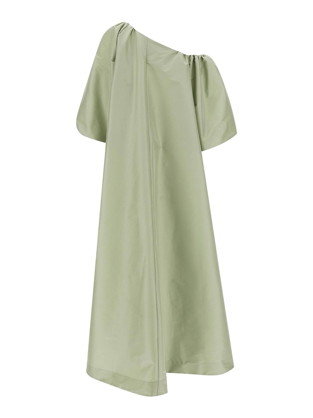 Long 'nathalie' dress in taffeta fabric, one-shoulder model, long wide balloon sleeves, pockets.