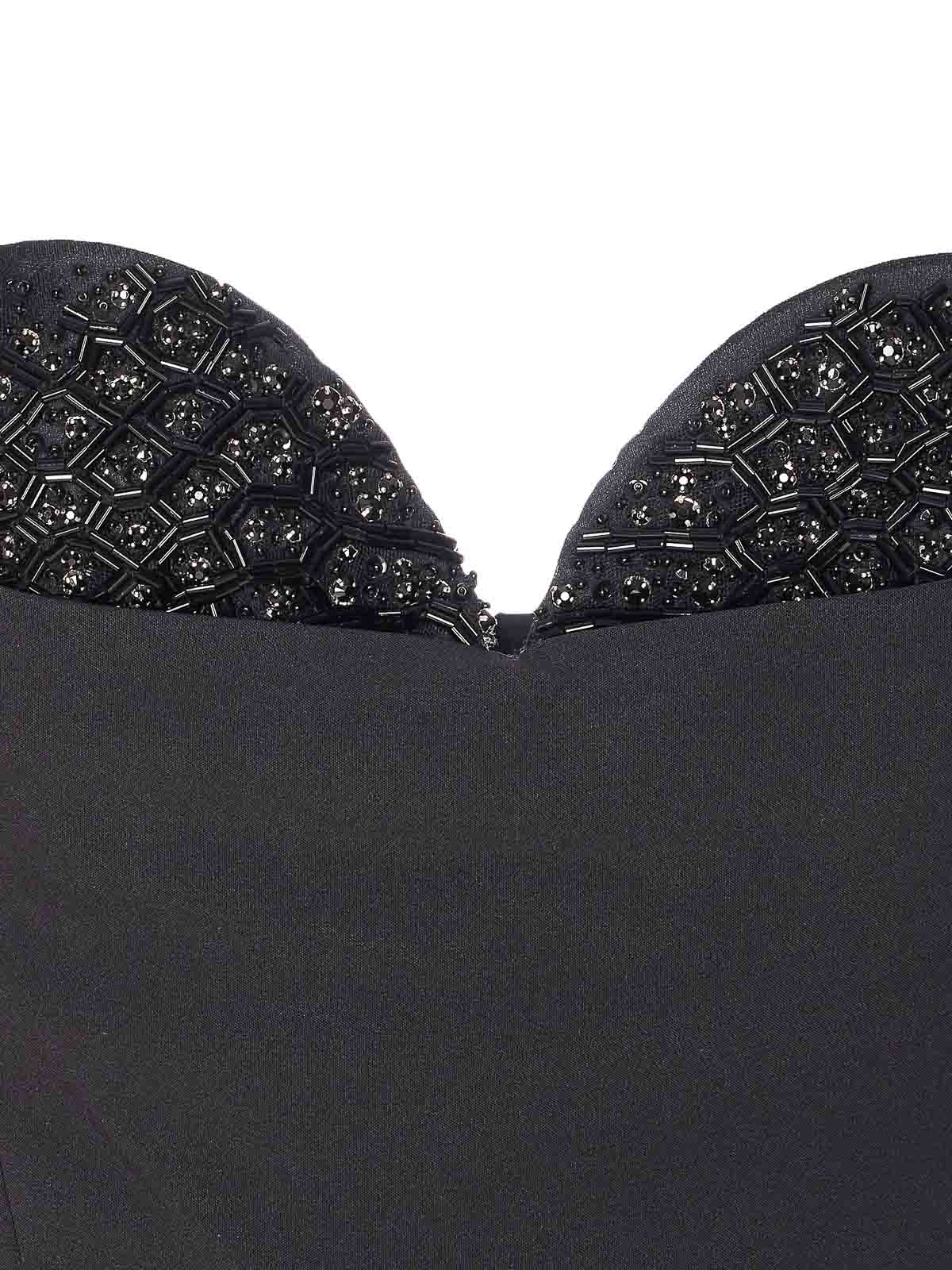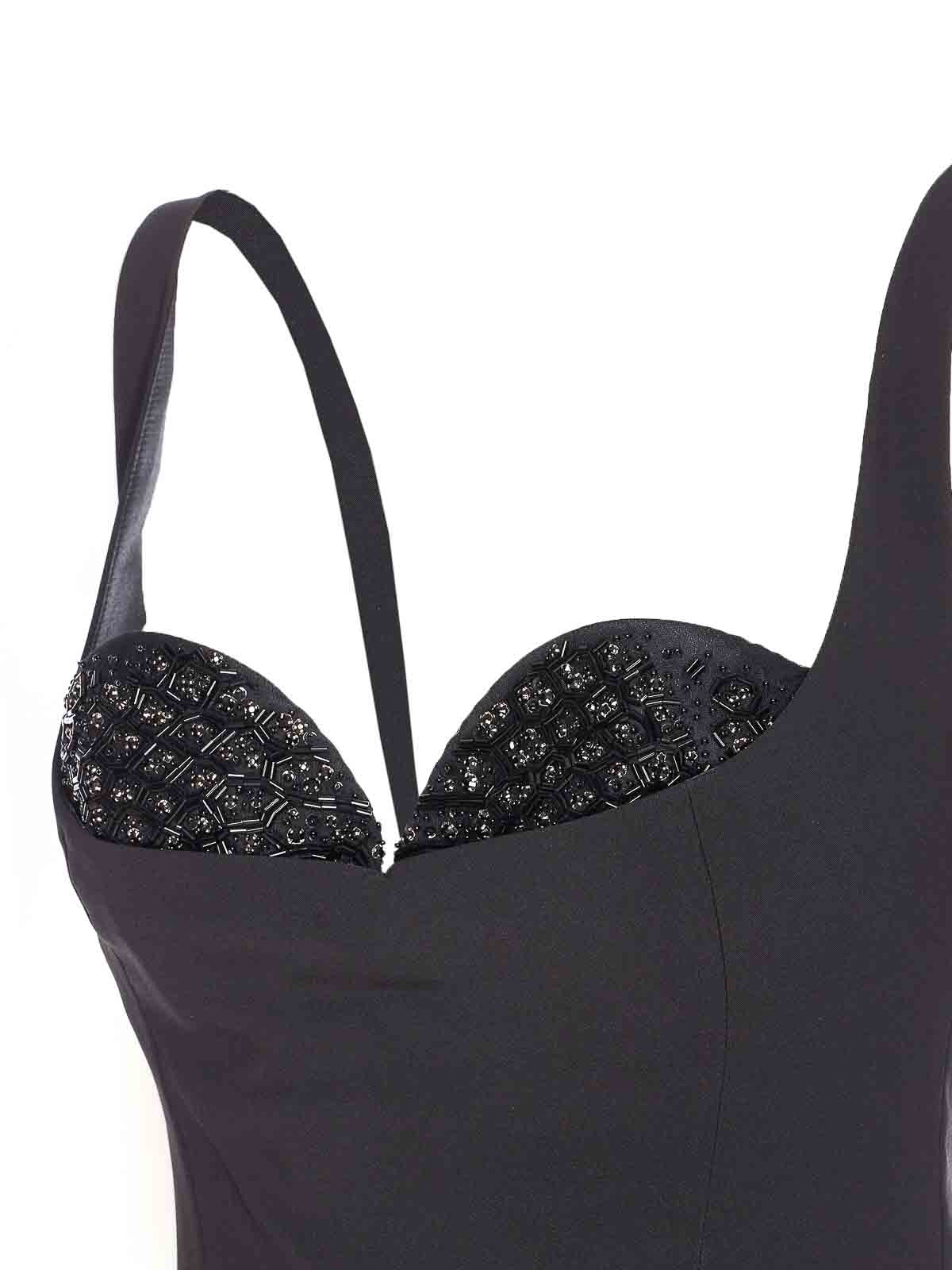 Elisabetta franchi black dress, zip closure on the back, adjustable shoulder, hook closure on the back, bra detail with applications sequins details, tight fit
