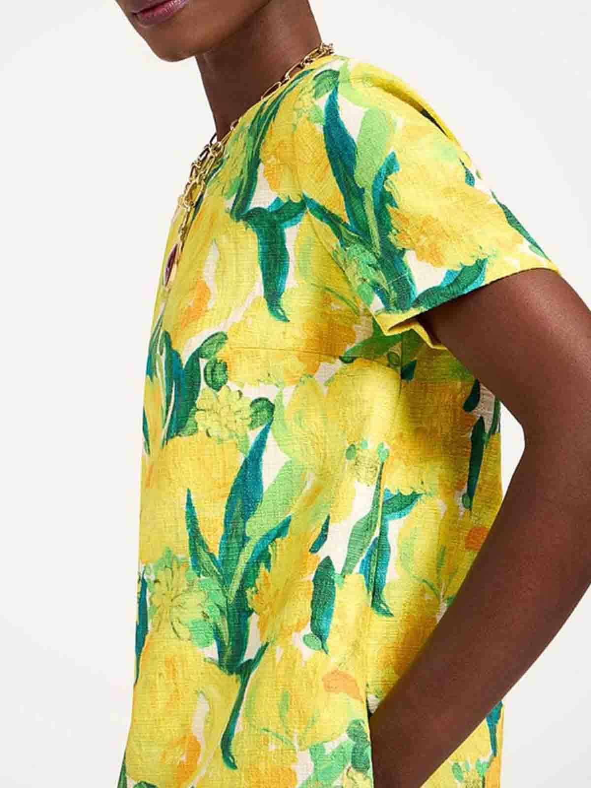 Cotton style, fitted at the shoulders, loose at the hips, flared, above-the-knee length, hidden shaped side pockets, hidden back zip. composition: 98% cotton 2% elastane made in italy