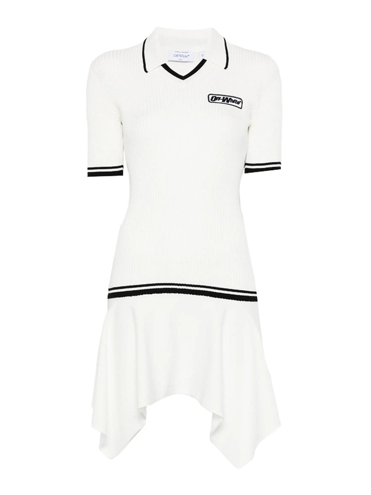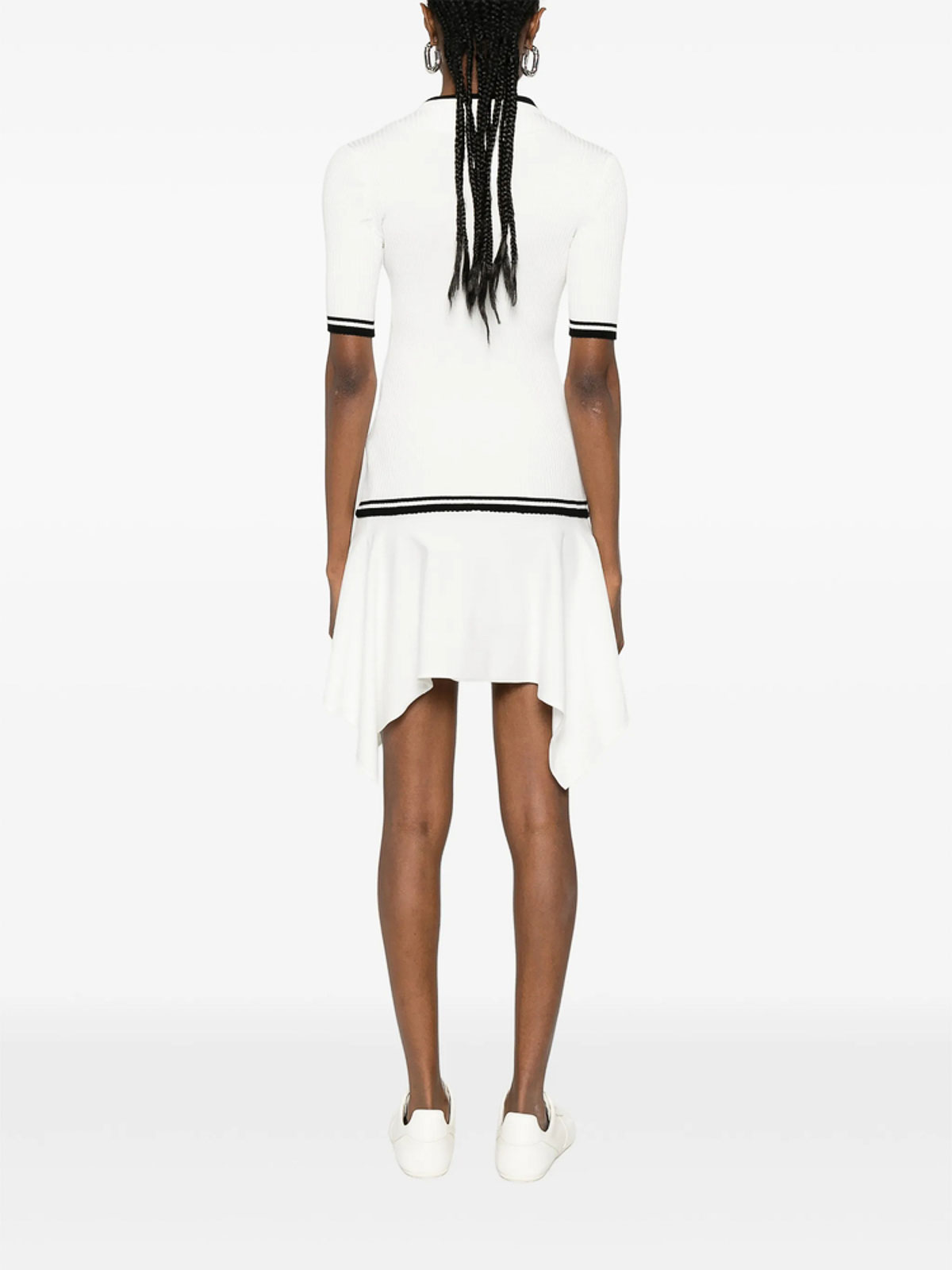White ribbed knit logo patch short sleeves a-line skirt contrast trim
