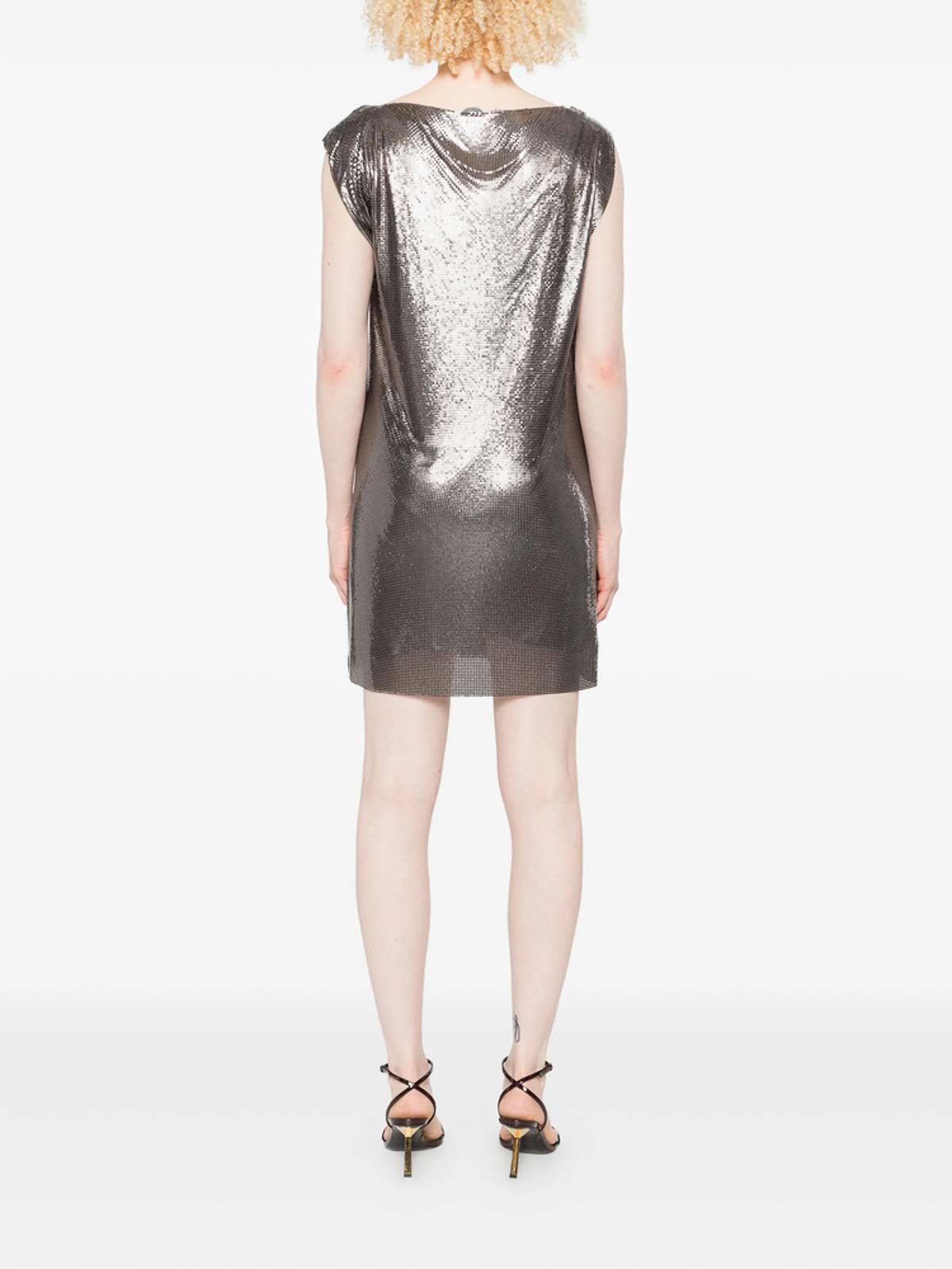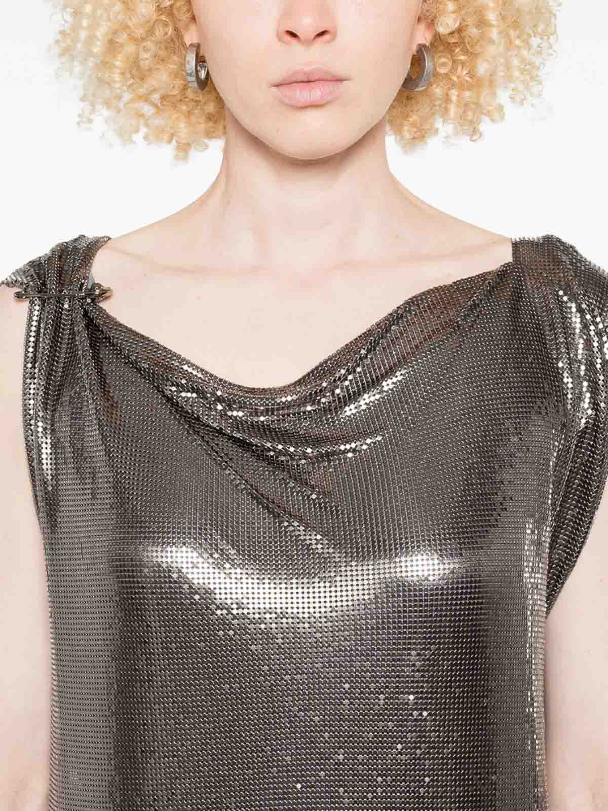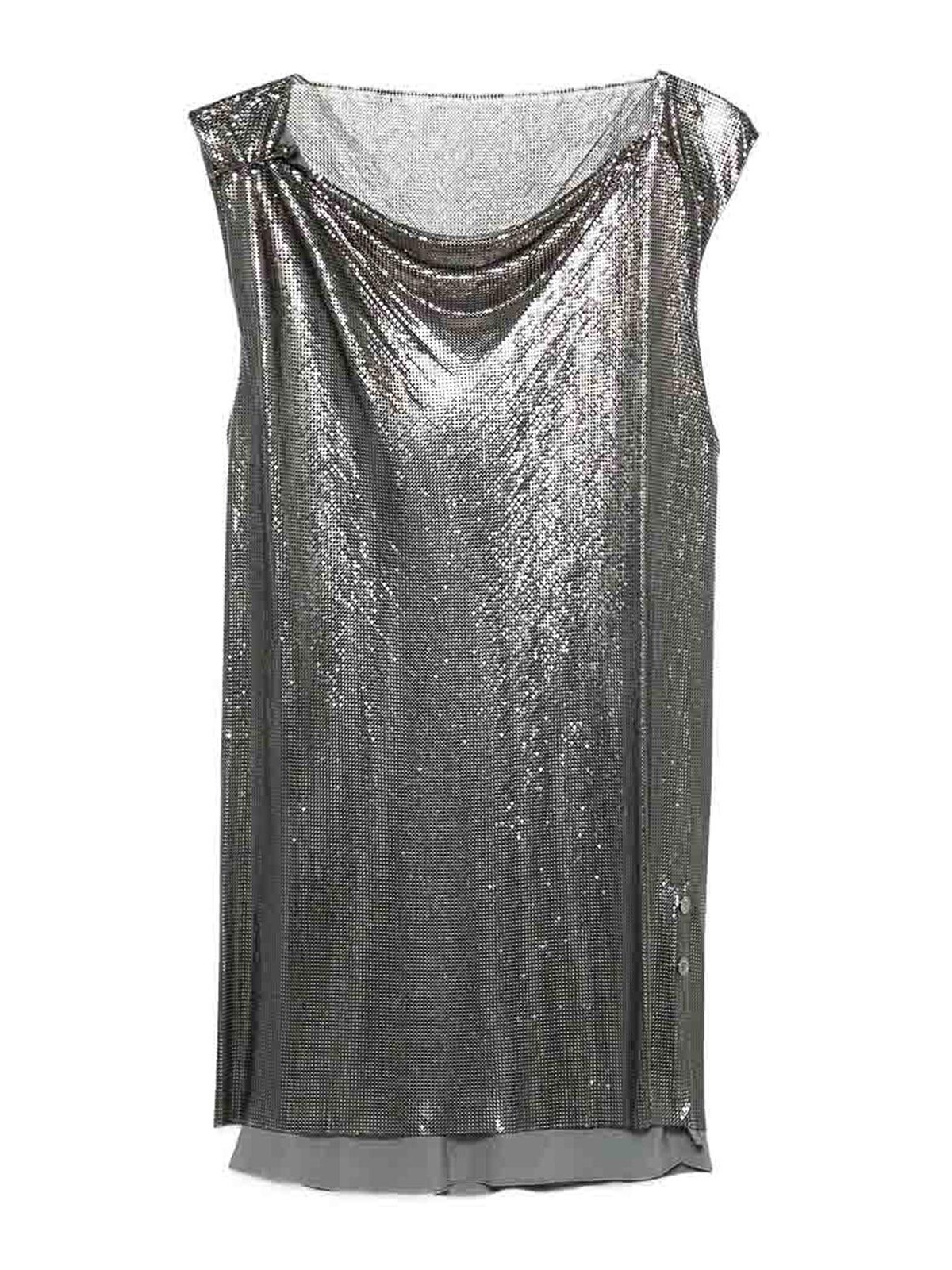Light gun-tone chainmail construction cowl neck sleeveless straight hem