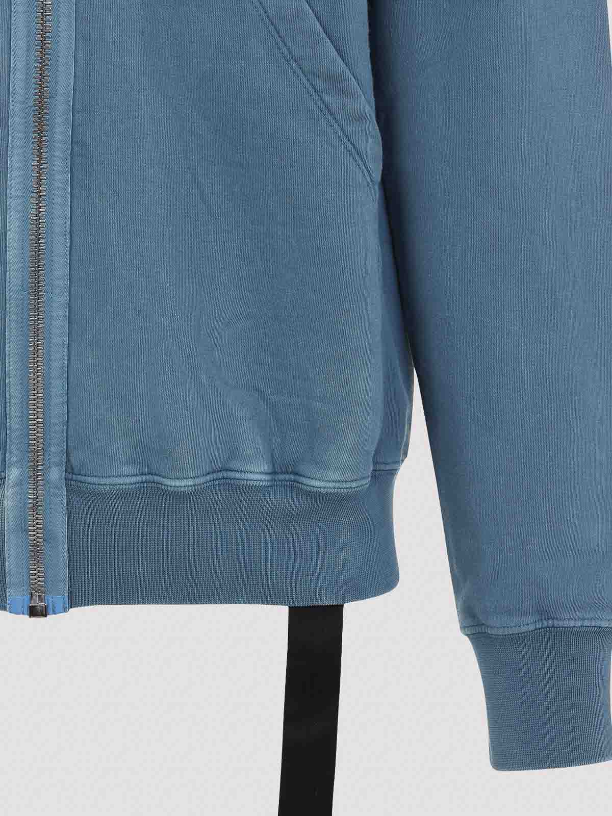 Rick owens drkshdw toothpaste degrade blue cotton gimp hoodie. pure cotton hoodie, tonal hood, front zipped fastening, side pockets, long sleeves, ribbed cuffs and hem, side strap, straight hem. toothpaste blue and white degrade design.