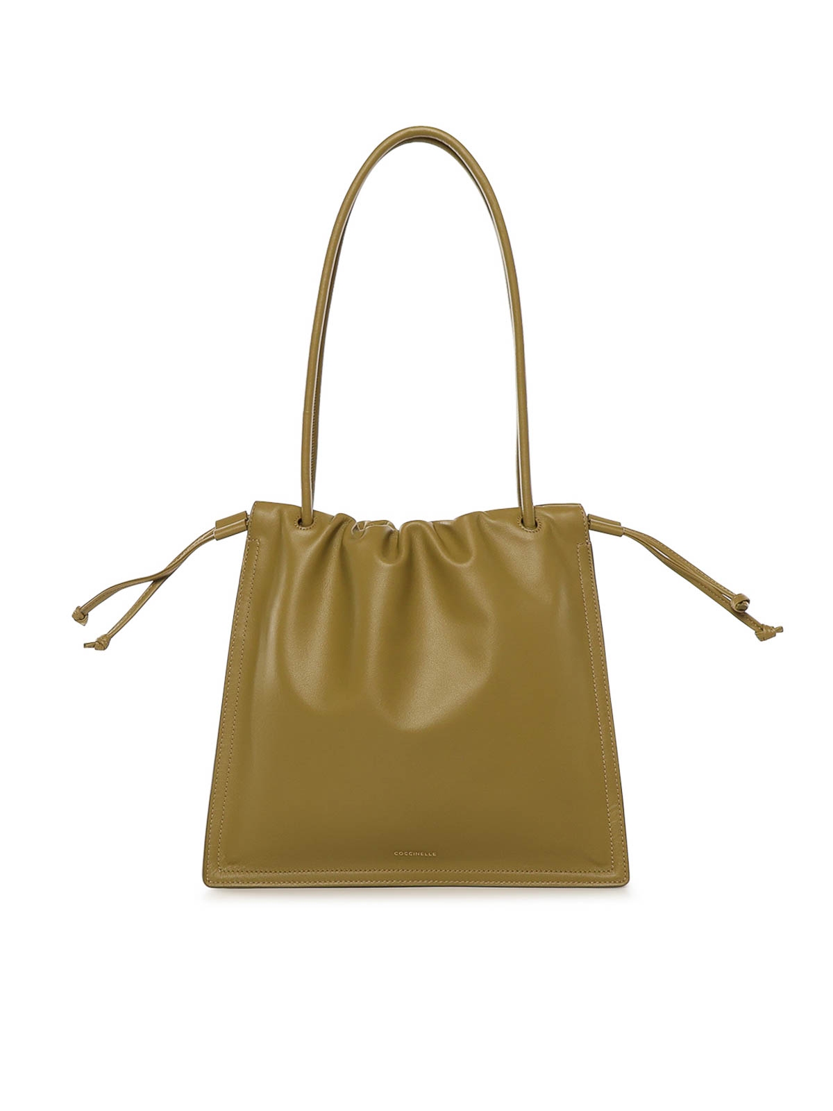 made of leather, drawstring closure, top leather handles, side drawstrings, dimensions: 31 x 28 x 12 cm, designer color: seagrass