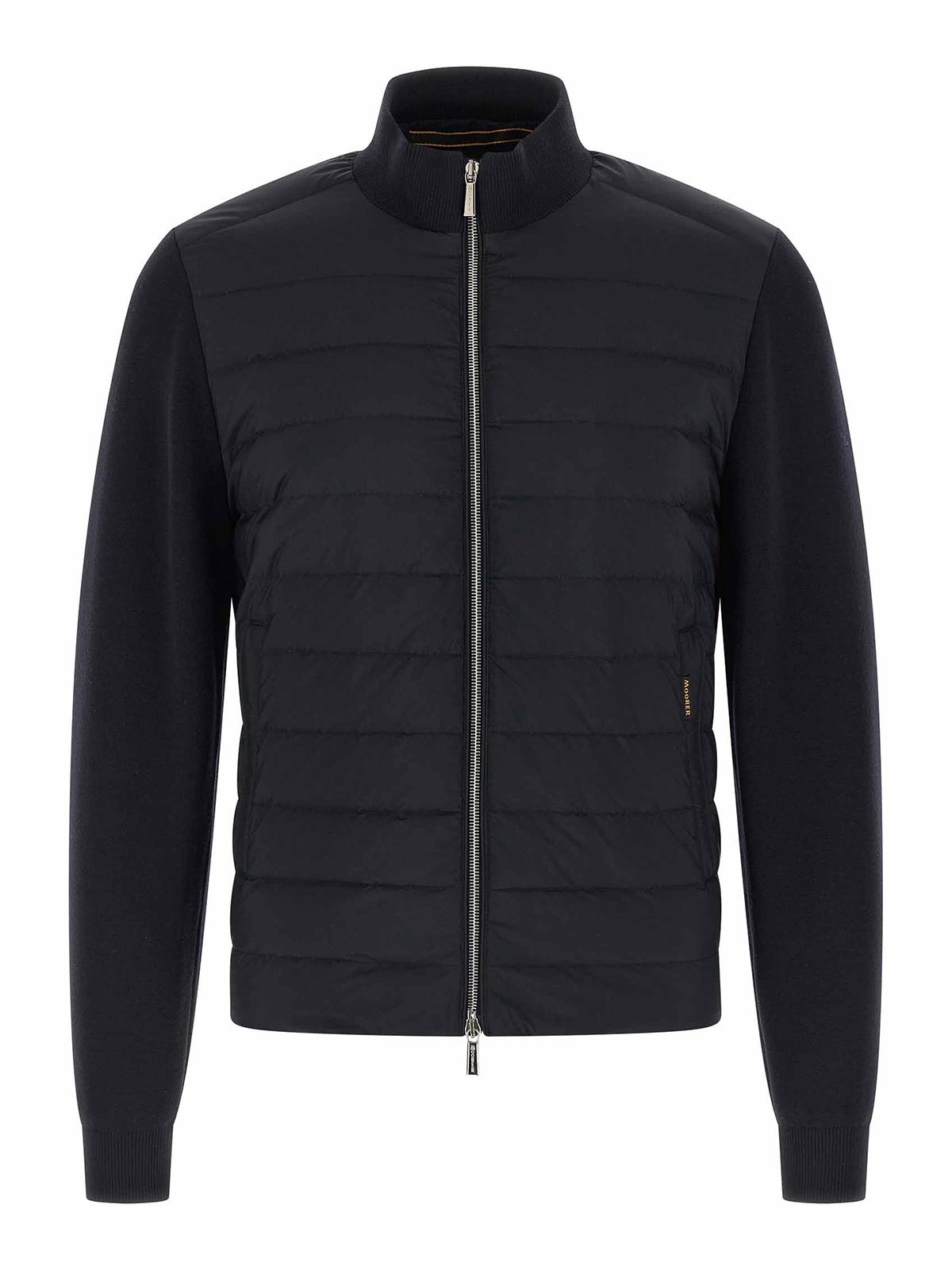 duncan' silk, wool and cashmere blend jacket with quilted tech fabric front, nylon lining with goose feather padding, high neck, front zip closure, pockets, long cuffed sleeves, headband.