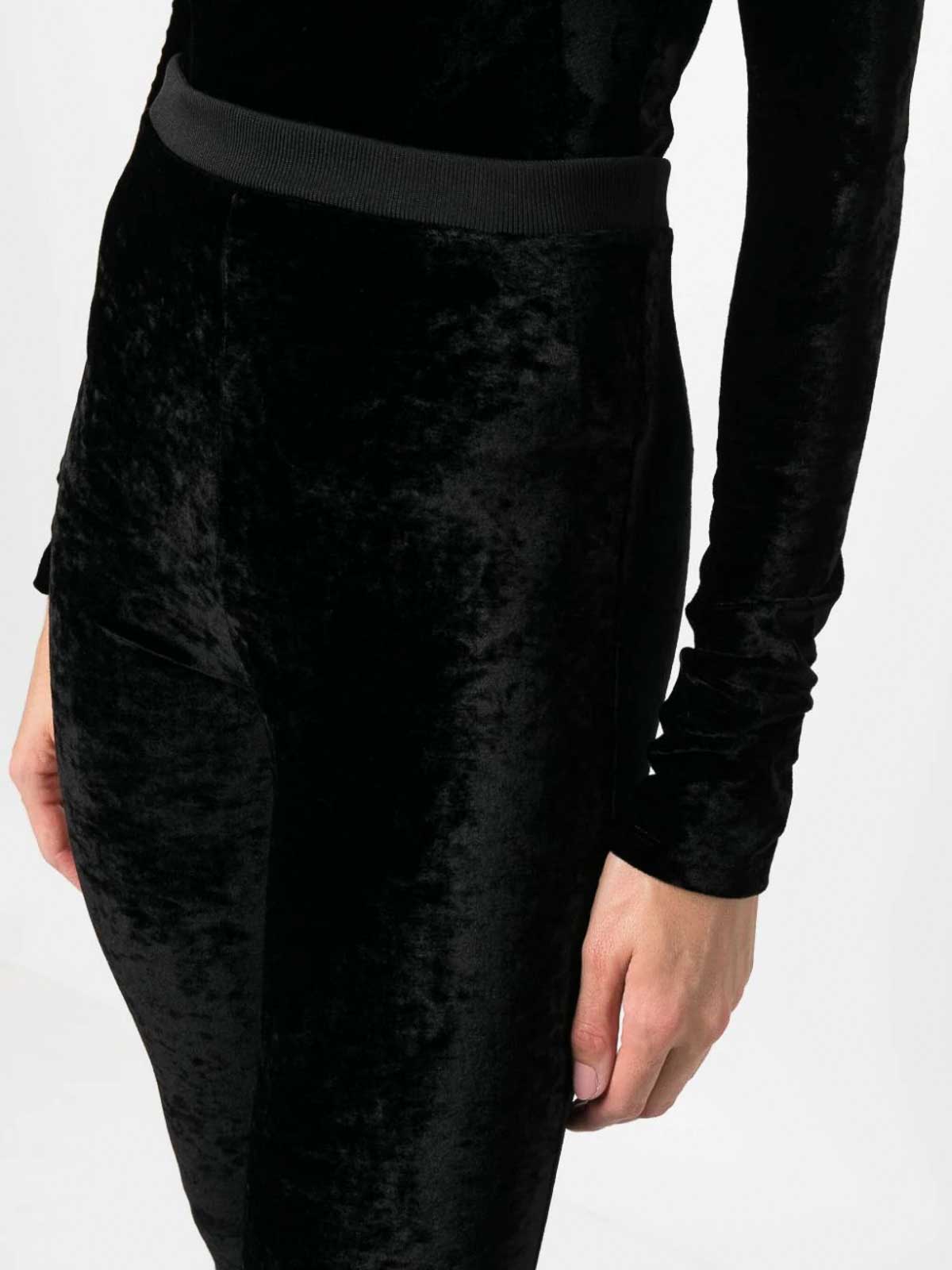 black- viscose blend- velvet- stretch-design- high-waisted- slim cut- bootcut- elasticated waistband- floor-length-