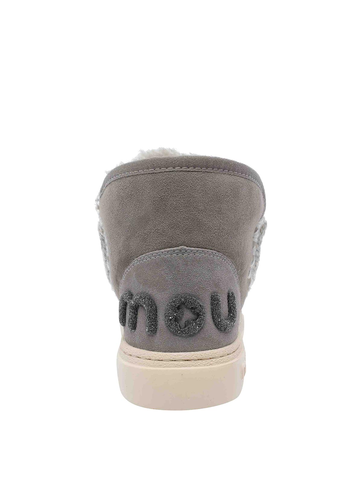 Mou grey eskimo sneakers, round toe, suede upper, glitter logo on the back