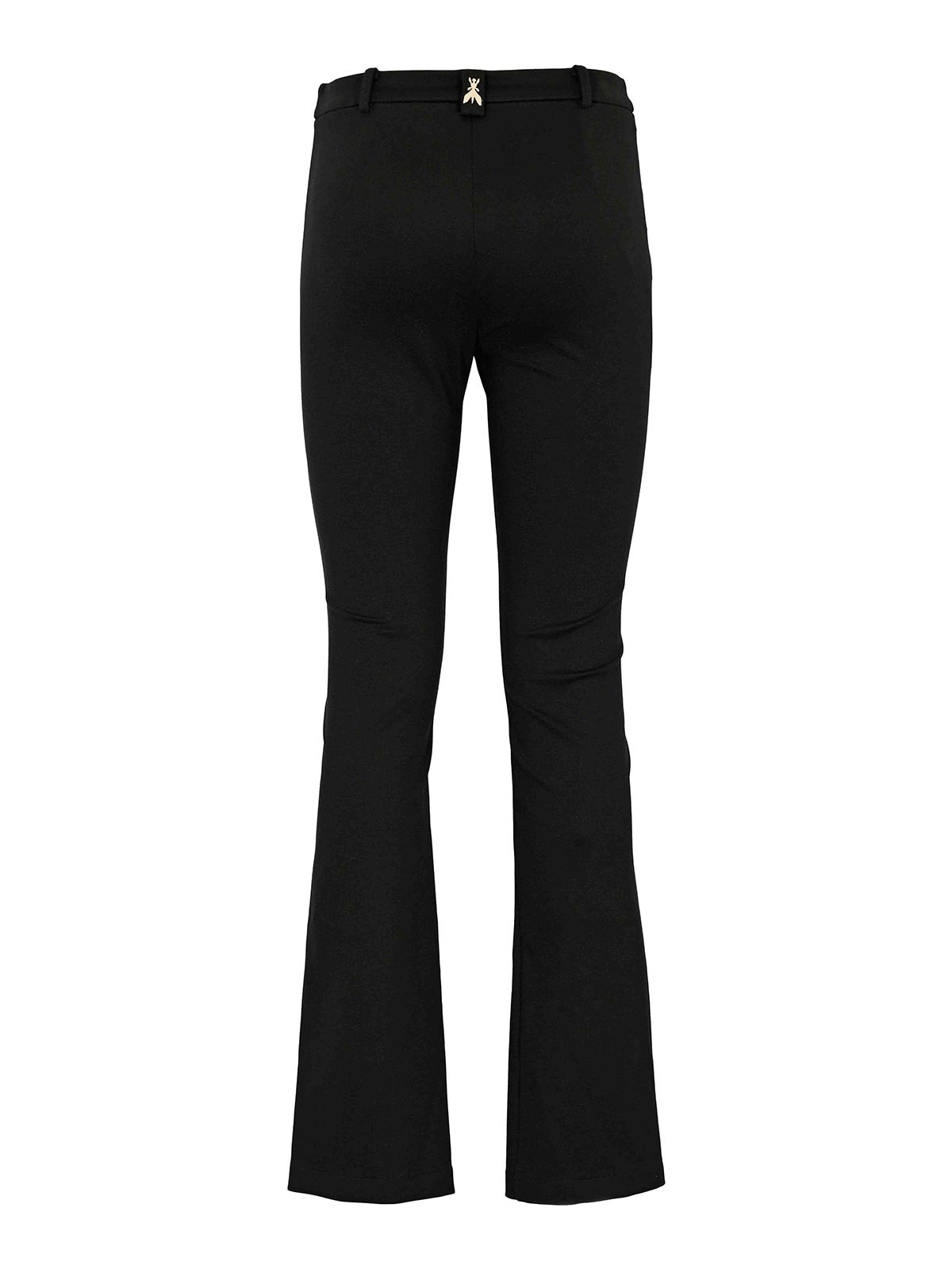 Patrizia pepe essential slim, fit stretch trousers stretch knit pattern solid black rise mid, rise with belt loops zip and button pockets inset side pockets and rear welt pockets length long slim fit slightly flared at the bottom patrizia pepe fly logo on the back simple and clean construction lined no fit fitted