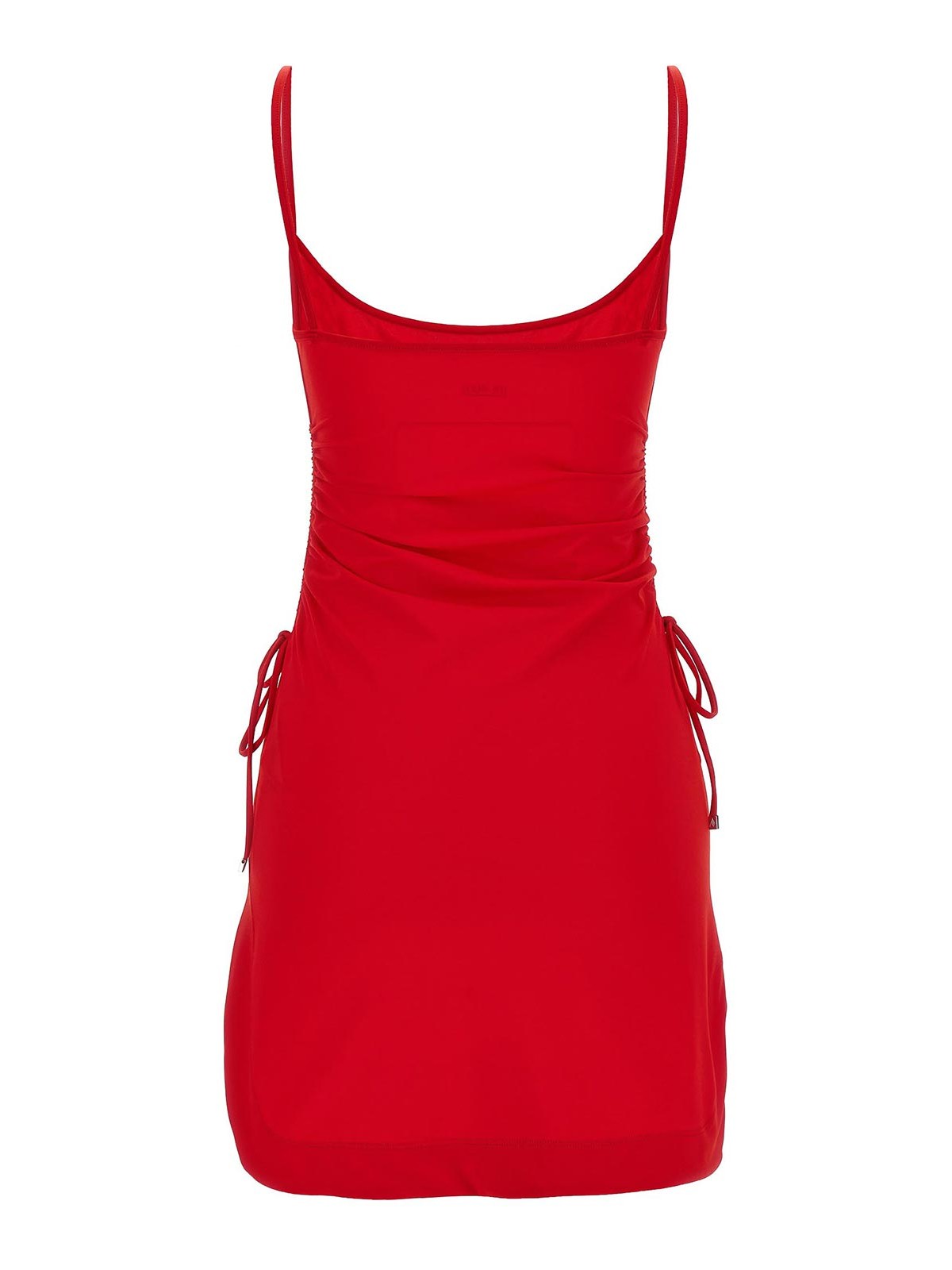 estate meravigliosa' mini dress in stretch side drawstring with draping sleeveless thin straps shaped side slits