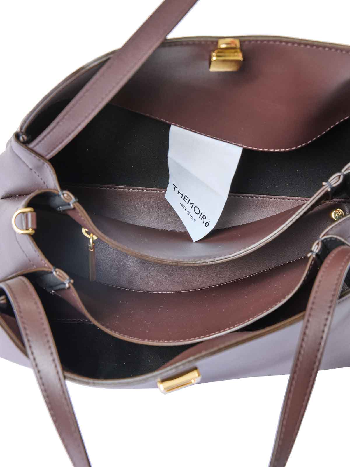 eudora in brown vegan leather shoulder bag by themoir, characterized by a double handle in coordinated leather, an interlocking magnetic closure or on the flap and the interior divided into 3 compartments with internal pockets eco-sustainable materials double handle interlocking magnetic closure 3 internal compartments 2 internal pockets metal feet colour: brown 100% vegan leather h 19 x l 29 x w 15 cm h 7.48 x l 11.4 x w 5.9 in made in italy, .