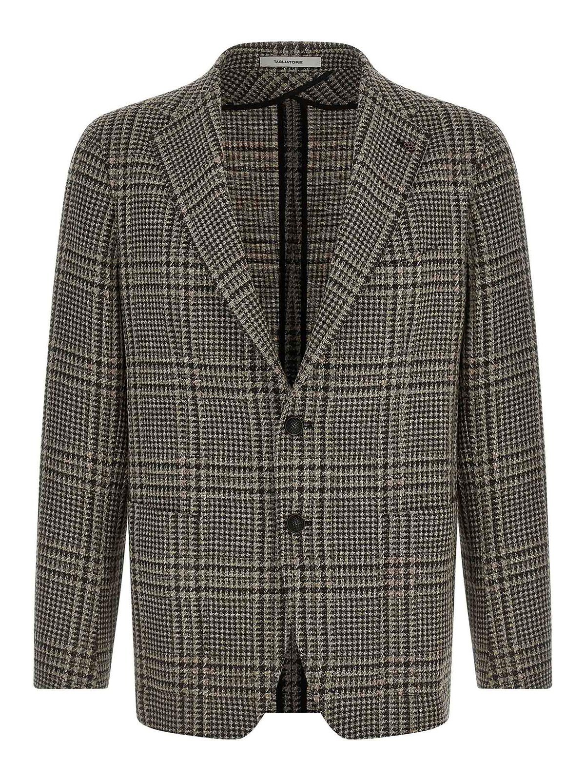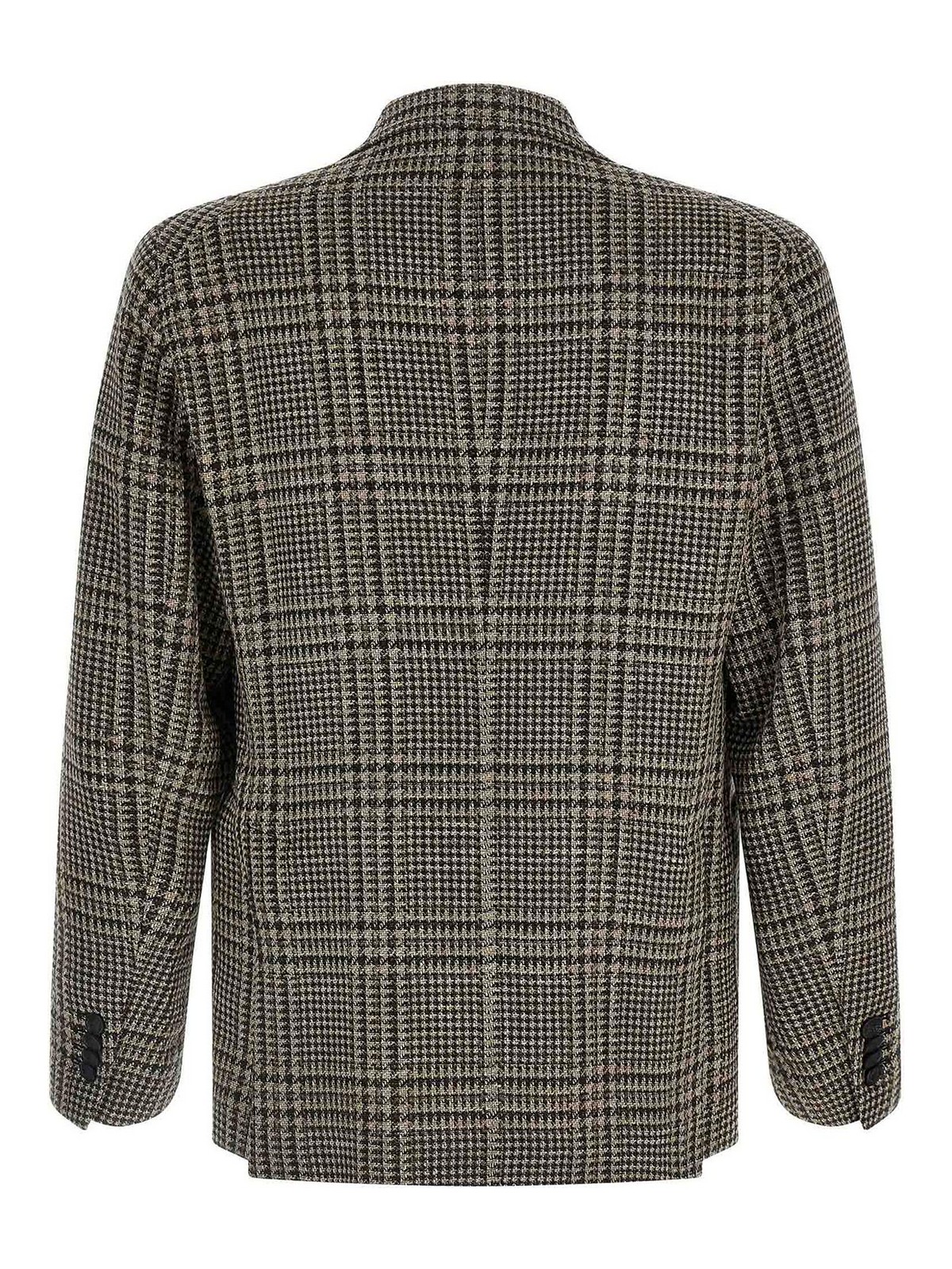 exclusive garment' line houndstooth blazer in wool and silk blend with deconstructed single-breasted model with front button closure, mirror lapels with removable metal brooch, breast pocket, patch pockets, cuffs with open buttonholes, back vents, unlined.