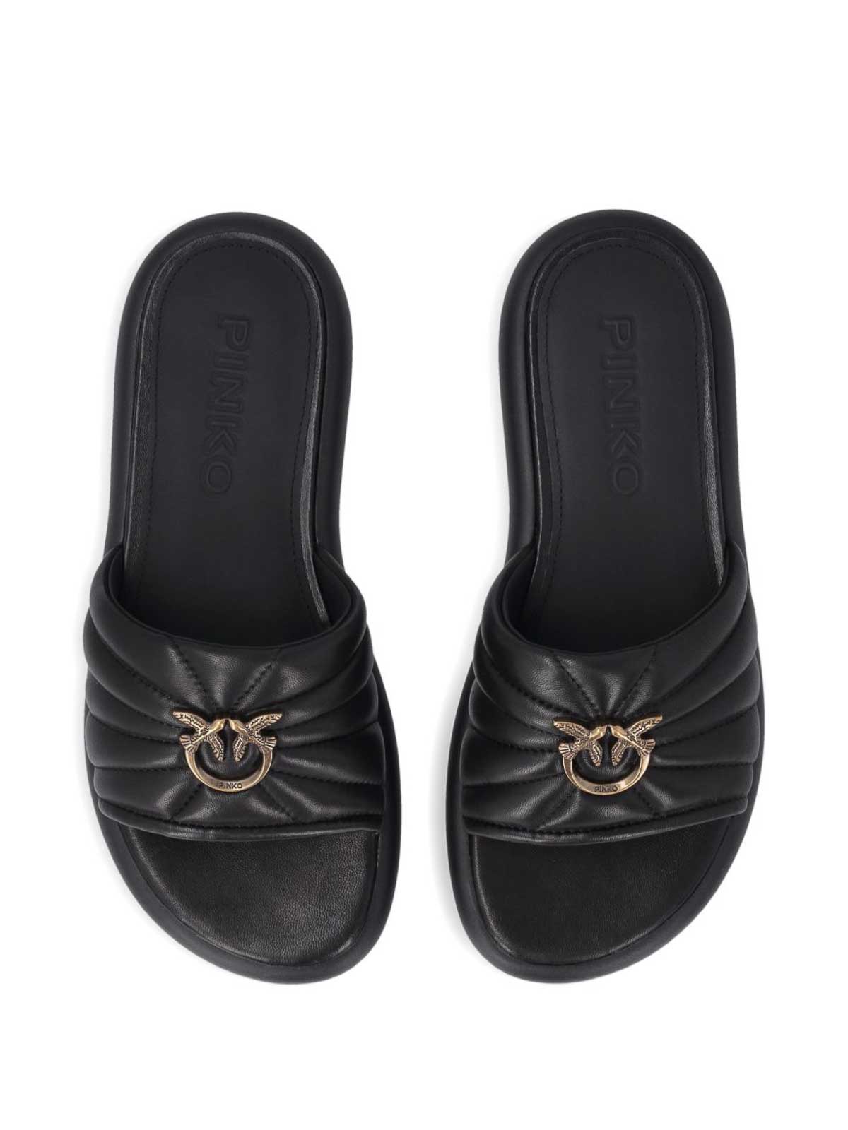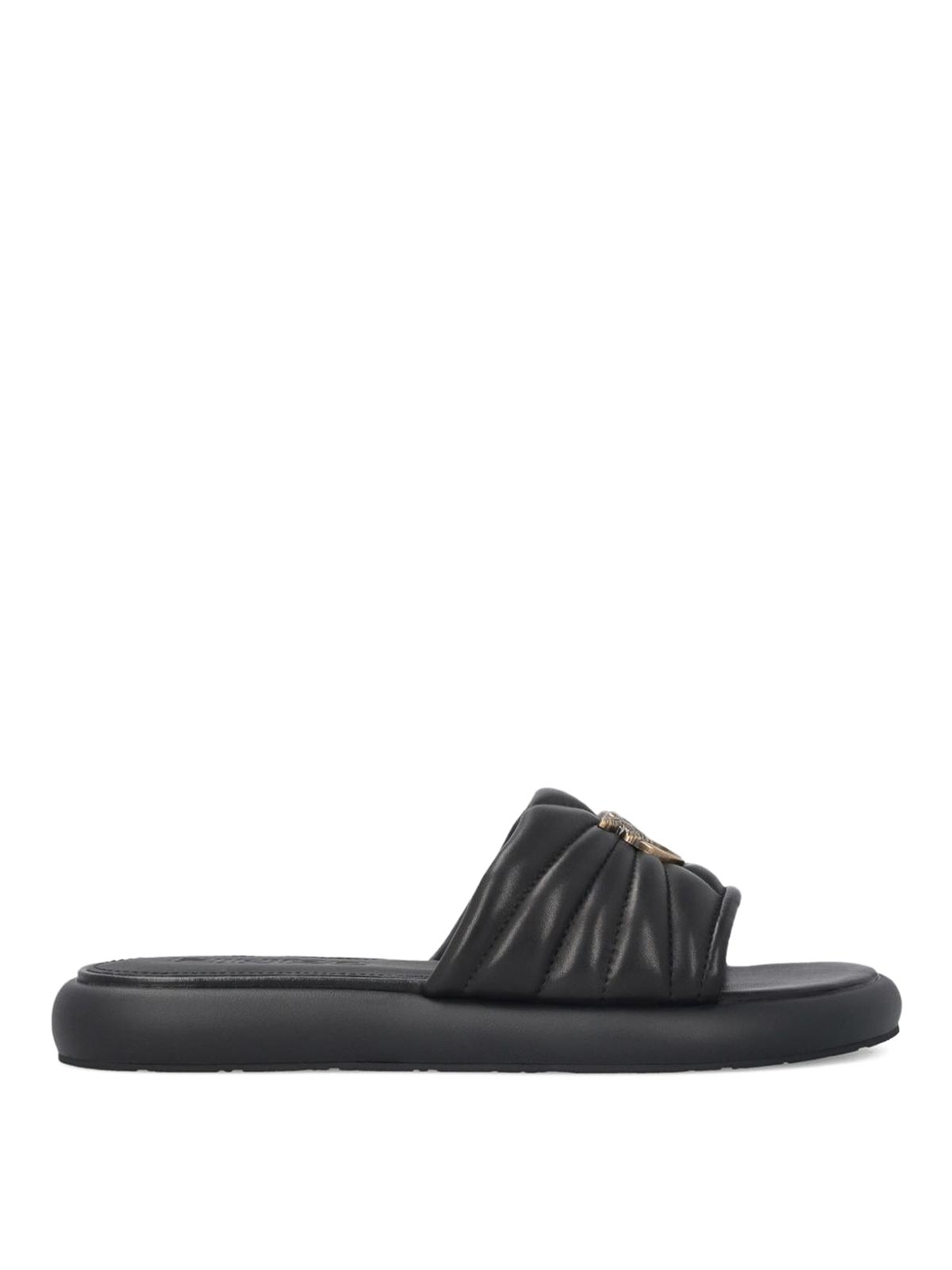 Black quilted strap logo appliqu open toe moulded footbed