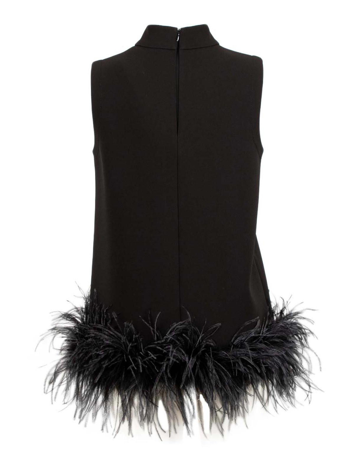 Sleeveless top, feathers on the bottom, concealed zip fastening along the back, 78% acetate 22% polyester, italy size