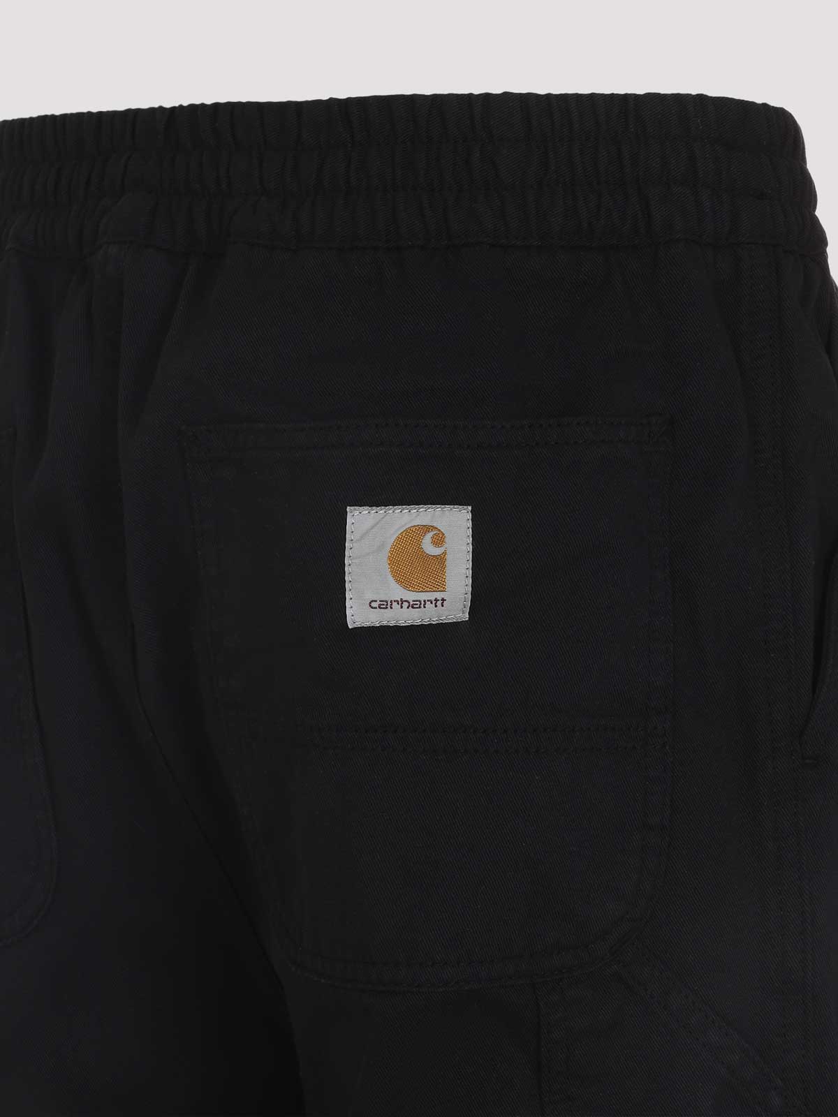 Carhartt wip black flint cotton pants. black cotton, elastic waist, straight legs, multipocket style. signature logo label, regular fit.