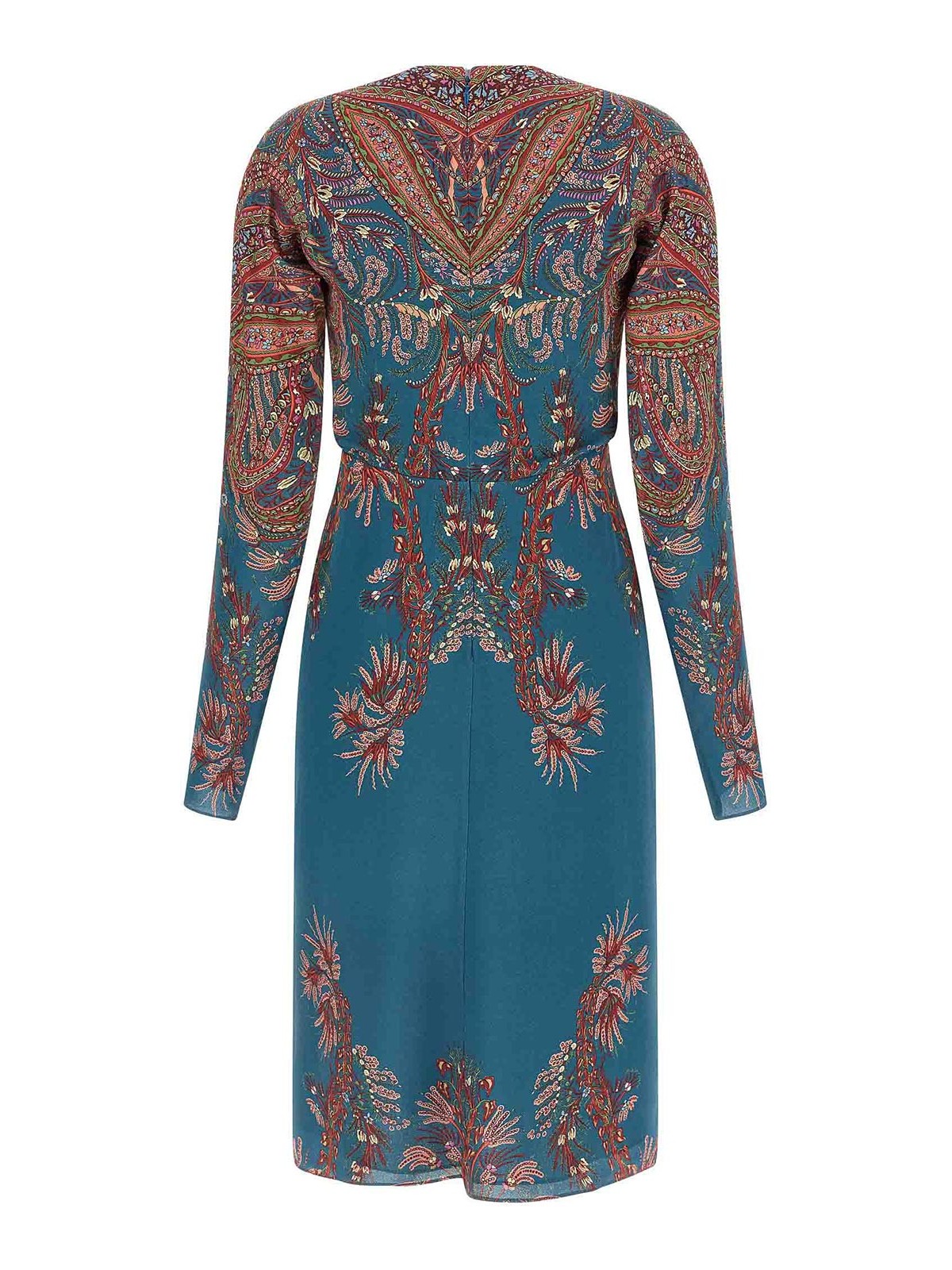 Floral print midi dress drape v, neck long sleeves back zip underskirt