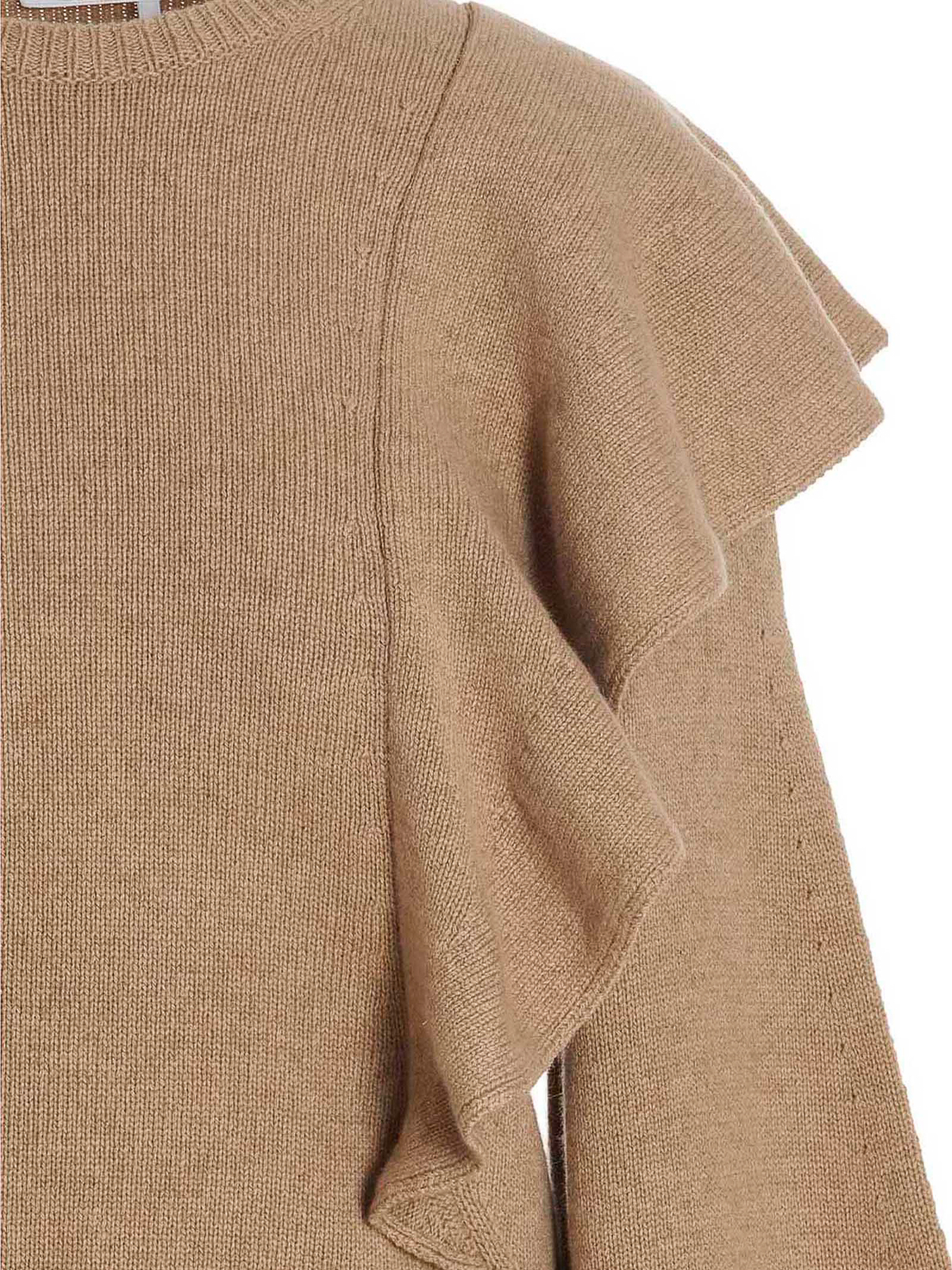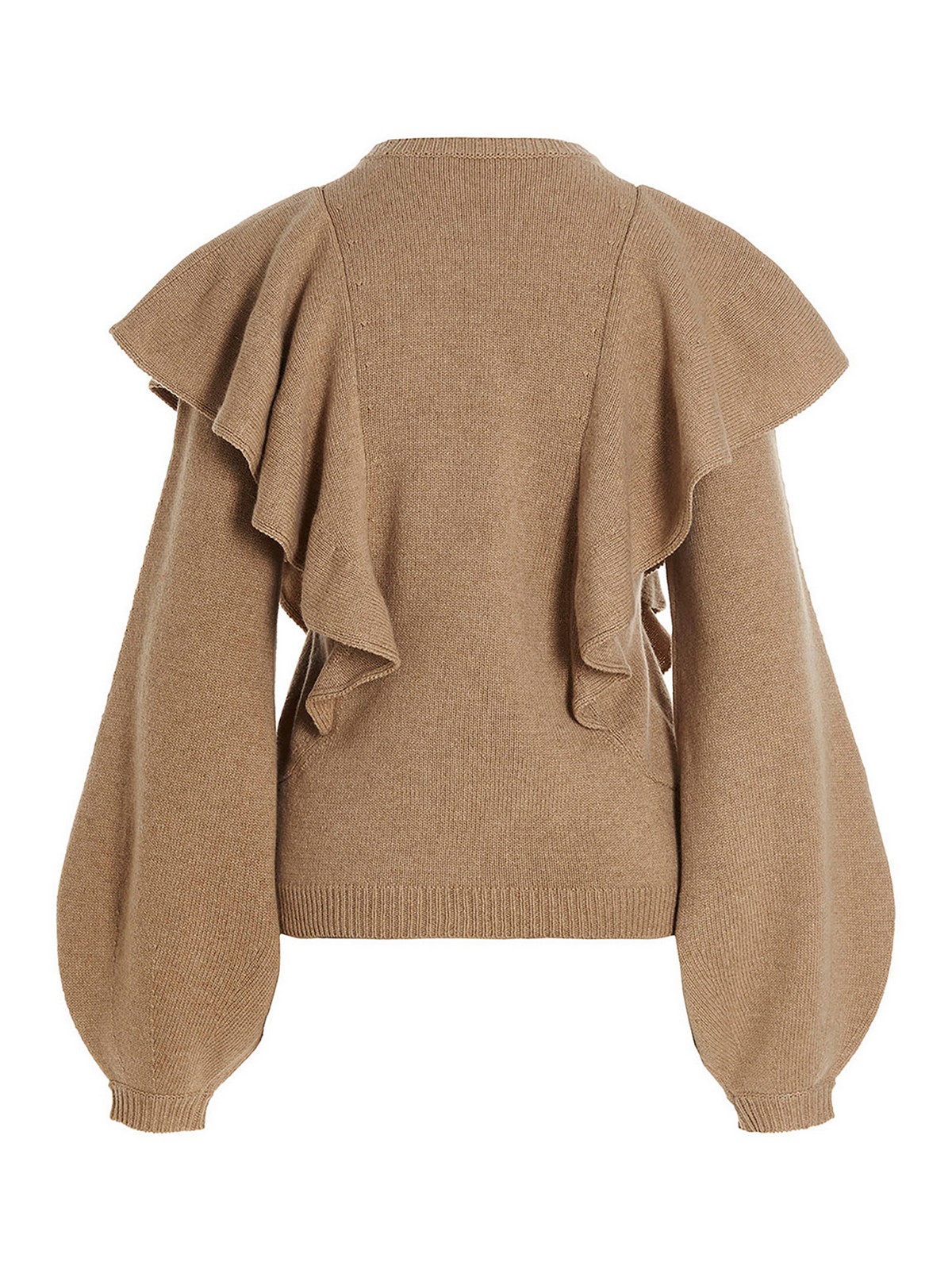 Cashmere sweater with flounces featuring a crewneck and long cuffed sleeves