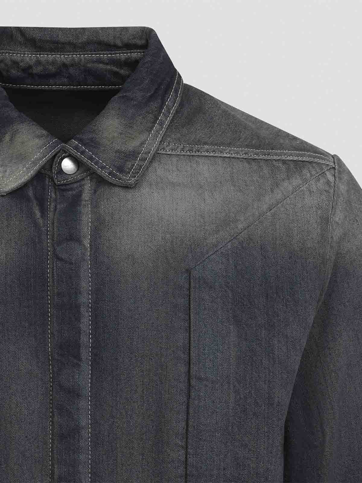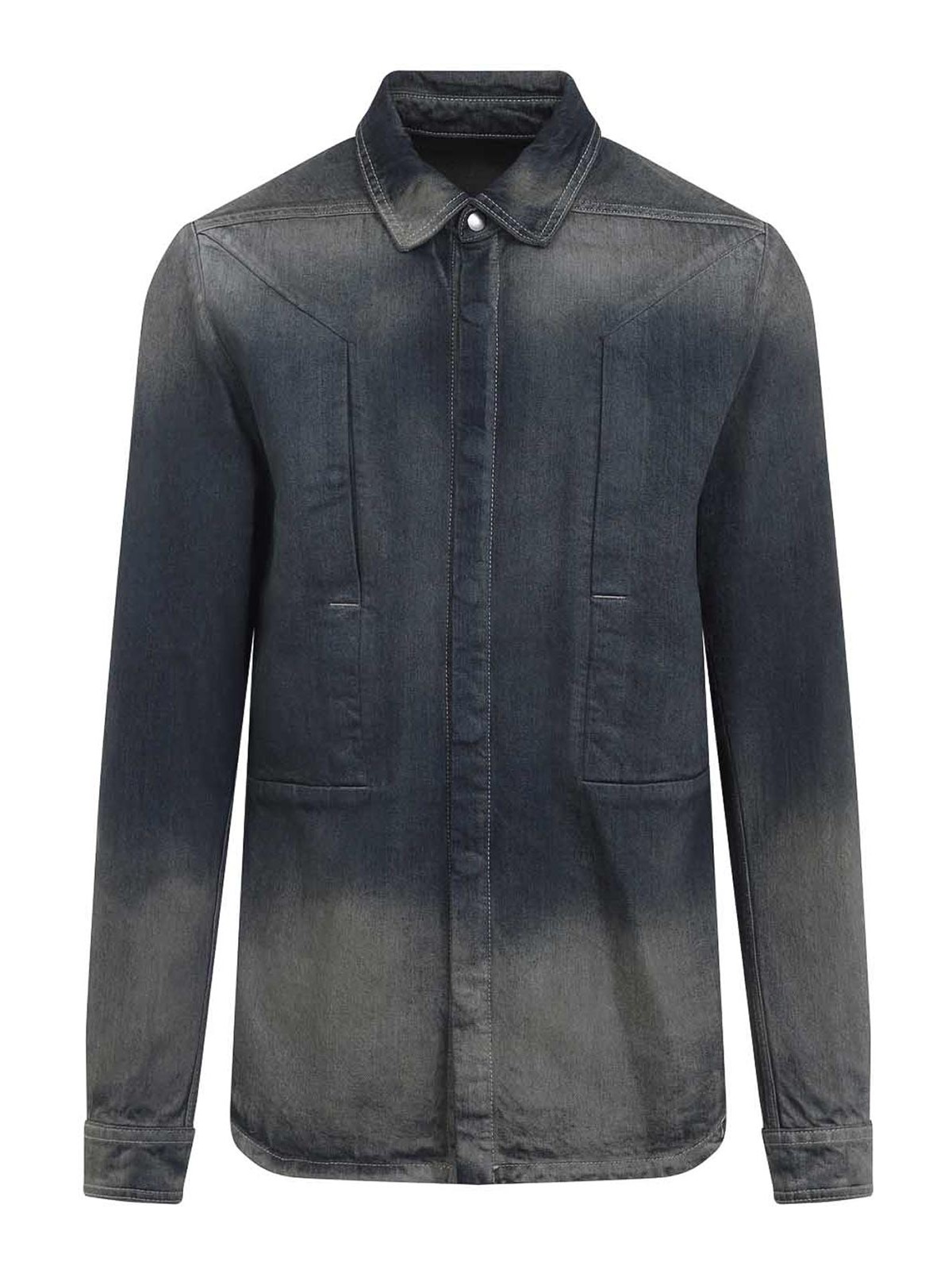 Rick owens dark dust brown fogpocket outershirt pure outershirt pointed collar concealing buttoned chest slit pockets long sleeves buttoned cuffs straight hem overwashed design