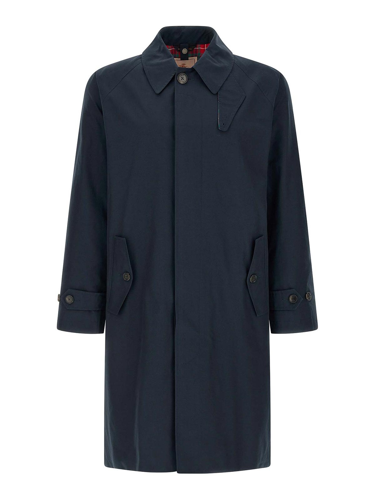 G12' cotton blend baracuta cloth coat with wr anti-drop treatment, breathable coolmax fabric lining with iconic fraser tartan pattern, shirt collar with removable rain flap, umbrella shoulder strap, concealed front button closure, long raglan sleeves, pockets, back vent. it can also be worn with the baracuta vest, fixed inside thanks to the practical clip and button.