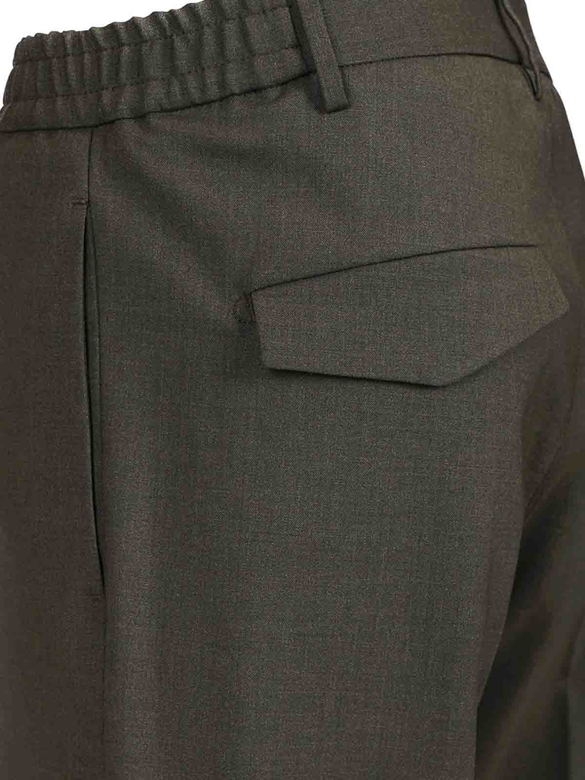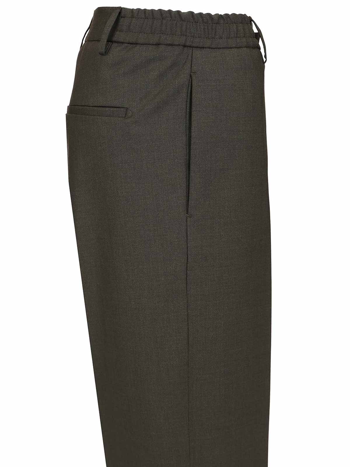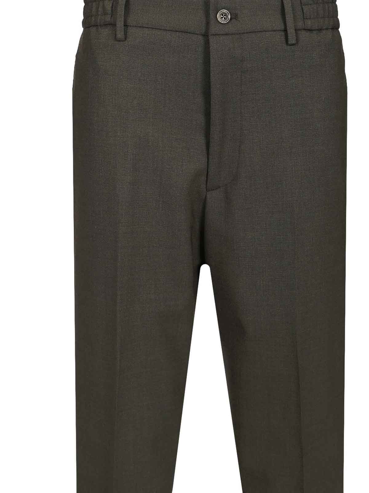 garcon trousers with elasticated waist in cool wool by tagliatore, with belt loops and elasticated sides, zip and button fastening at the front, welt pockets on the sides, welt pockets at the back, flap in the left pocket.