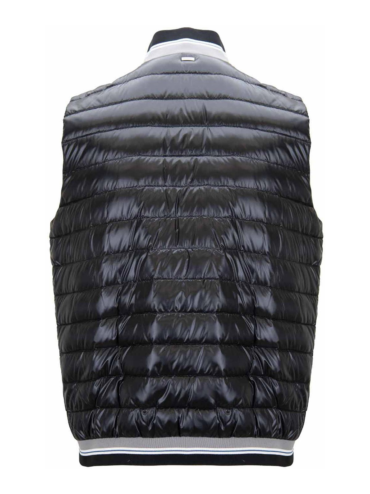 Herno men's vest. Main fabric and lining 100% in Poliamide. Borders in jersey made 98% in Polyamide and 2% in Elastan. Packaging made 90% in duvet and 10% feather. High sleeveless collar vest. lateral pockets on the front with closure via automatic button. collar and chief edges made of ribs. Double cursor zipper closure.