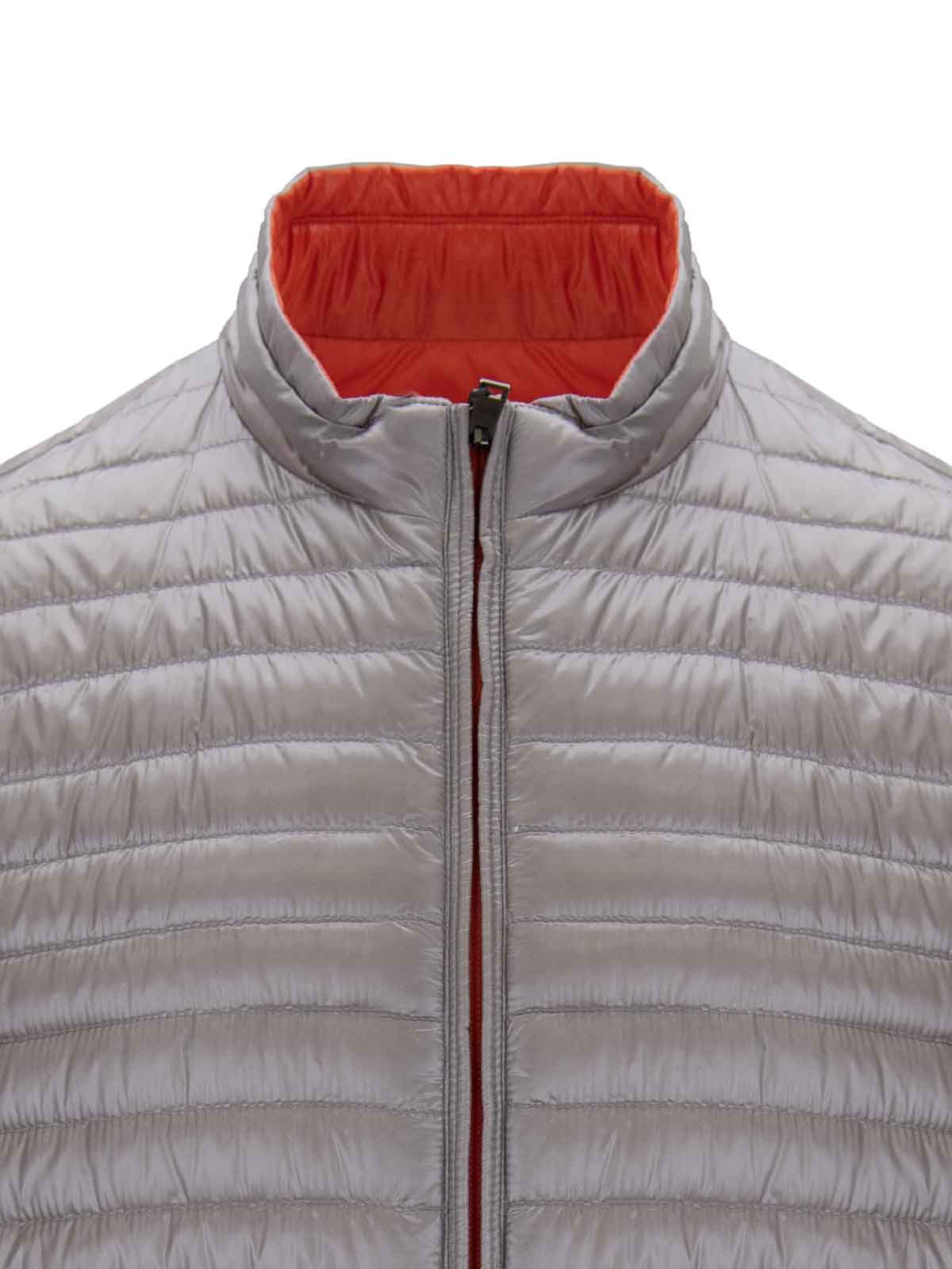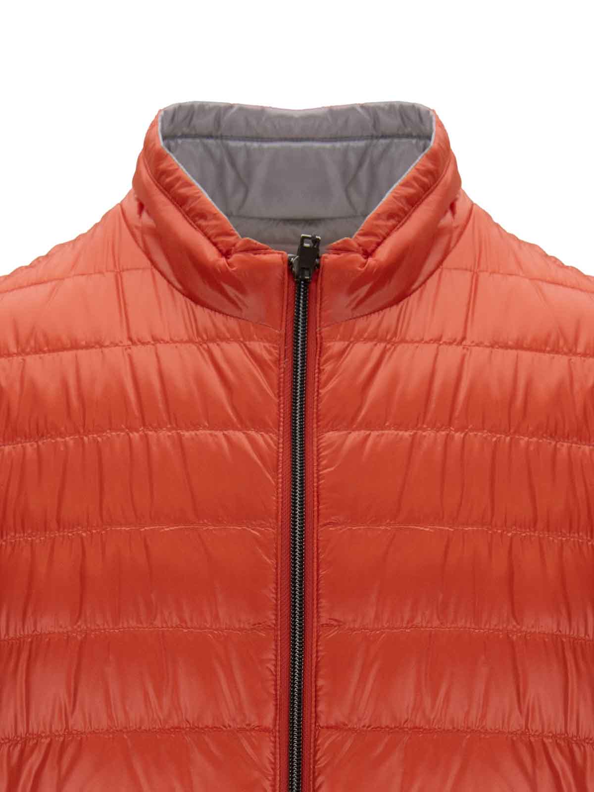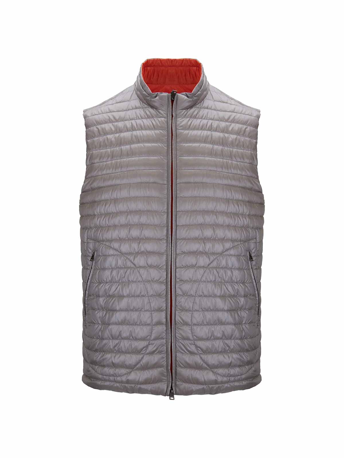 Herno men's vest. Main and internal fabric made 100% in Polyamide. Packaging made 90% in duvet and 10% feather. Sleeveless collar vest, reversible. It presents on both verses side pockets, in one way they have closure by means of automatic button while in the other via zip. DRESS PIUMINO on both verses via zipper.