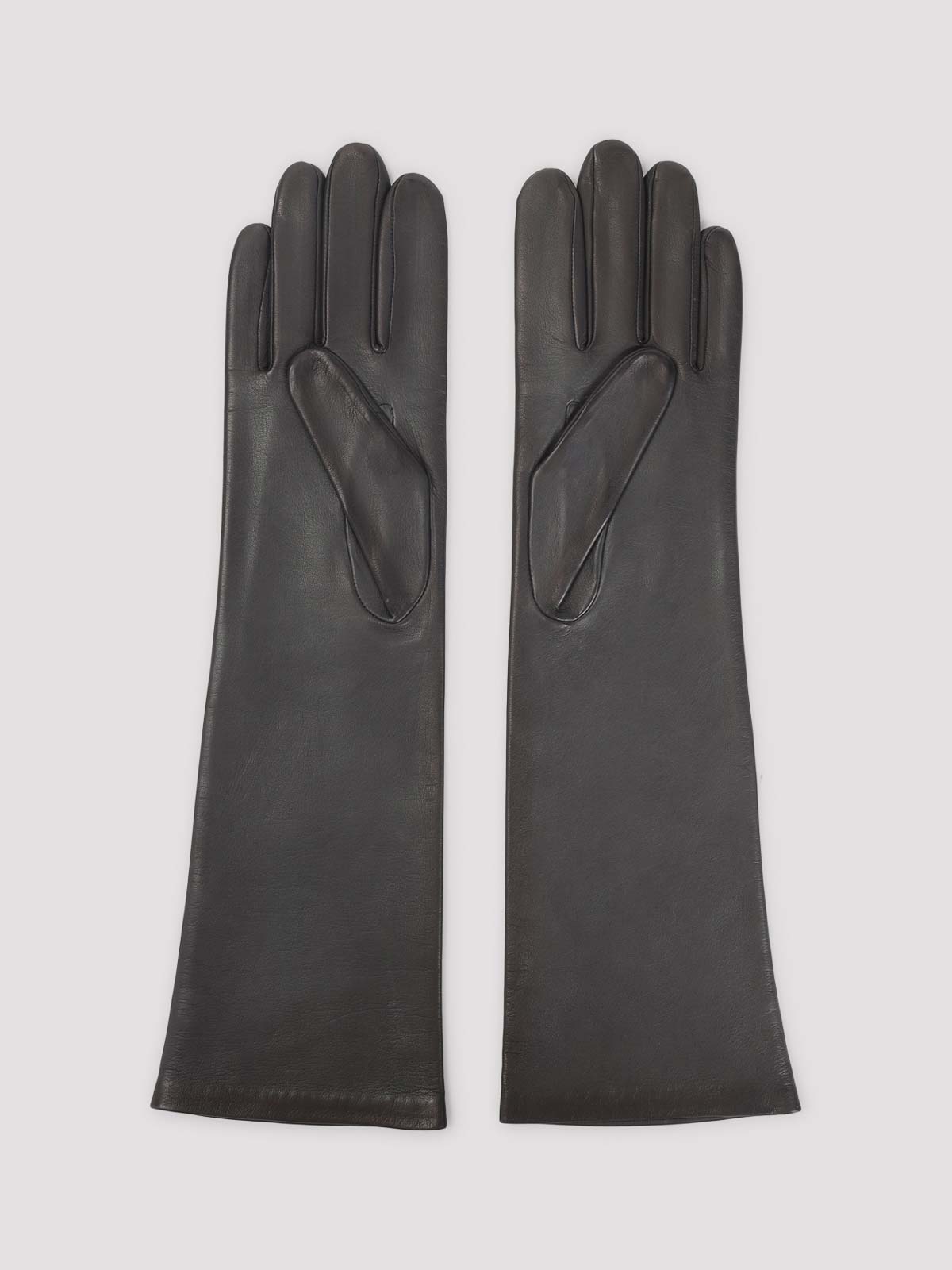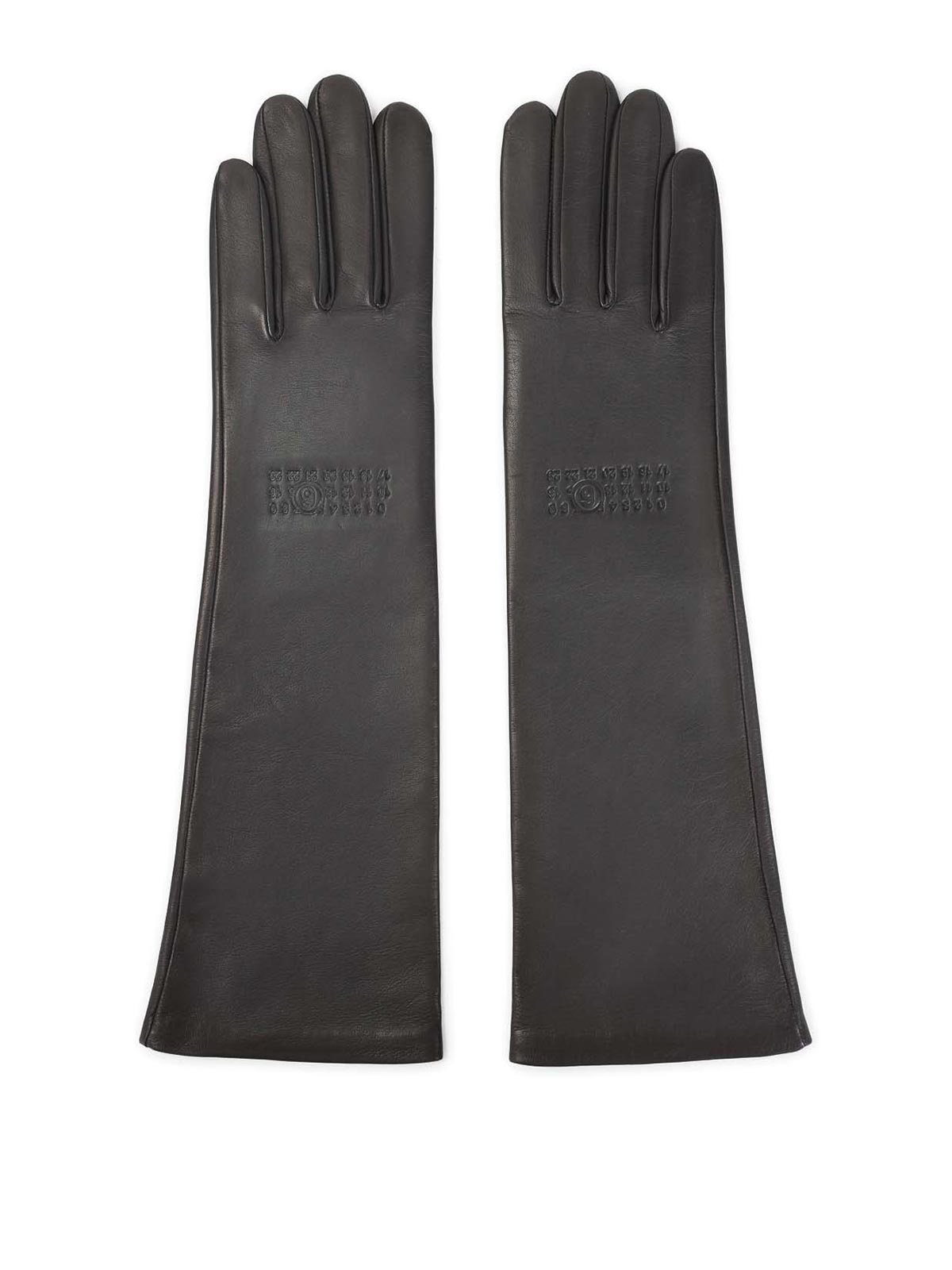Mm maison margiela grey gloves pure grey gloves top signature engraved lettering logo design tonal stitching mid, arm length