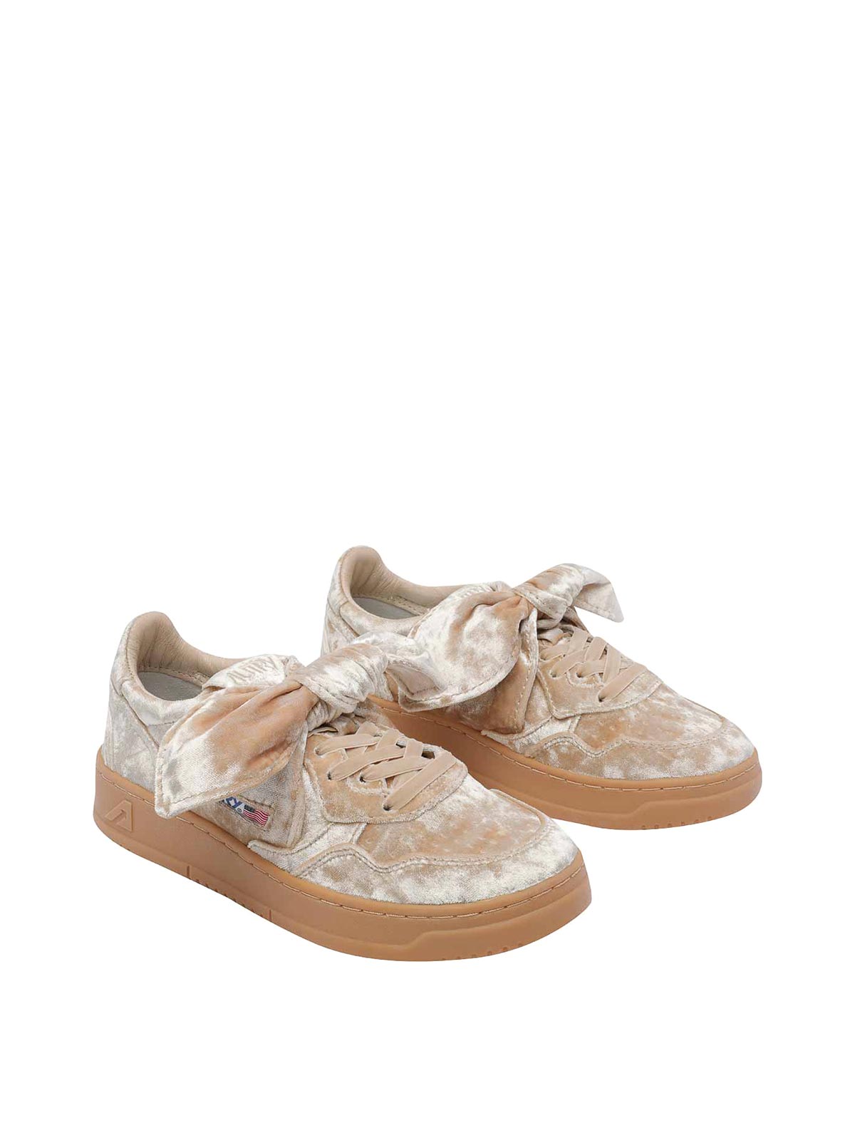 Autry gold medalist low velvet sneakers, round toe, frontal bow detail, lateral logo, velvet upper, laces closure