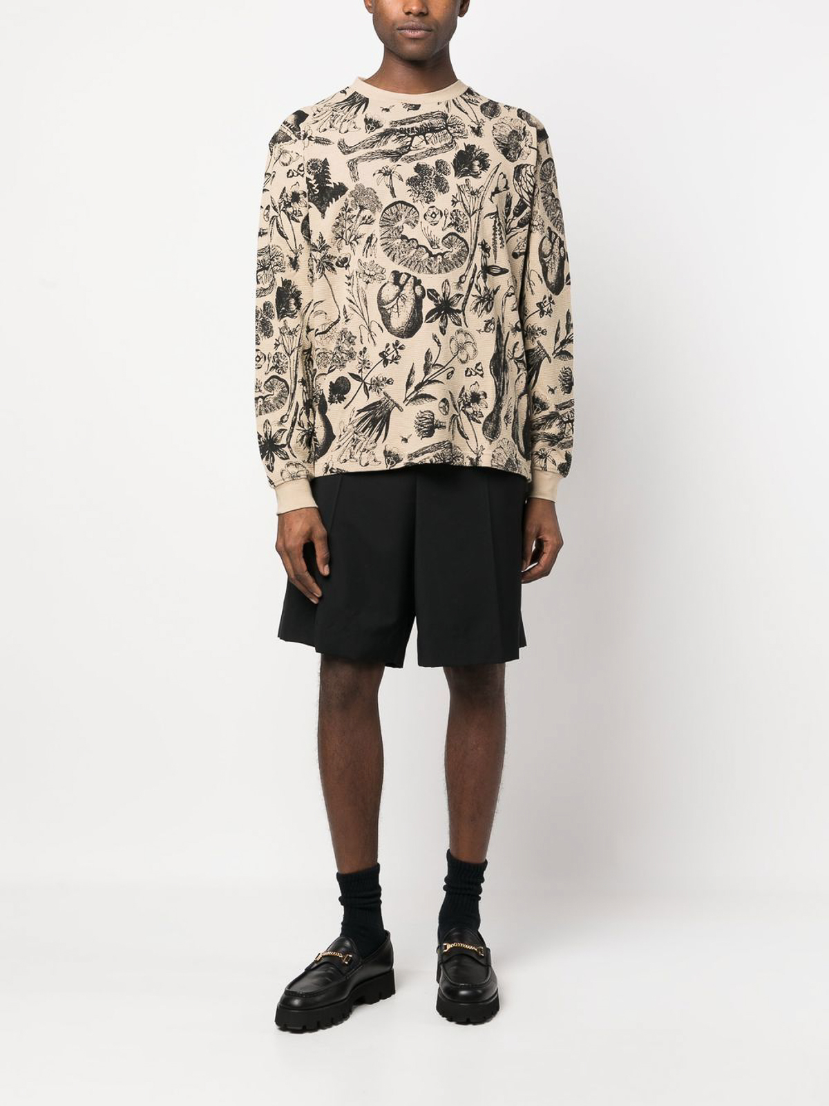 Graphic-print waffle-knit jumper from pleasures featuring cotton, waffle knit, all-over graphic print, crew neck, long sleeves and tan brown.