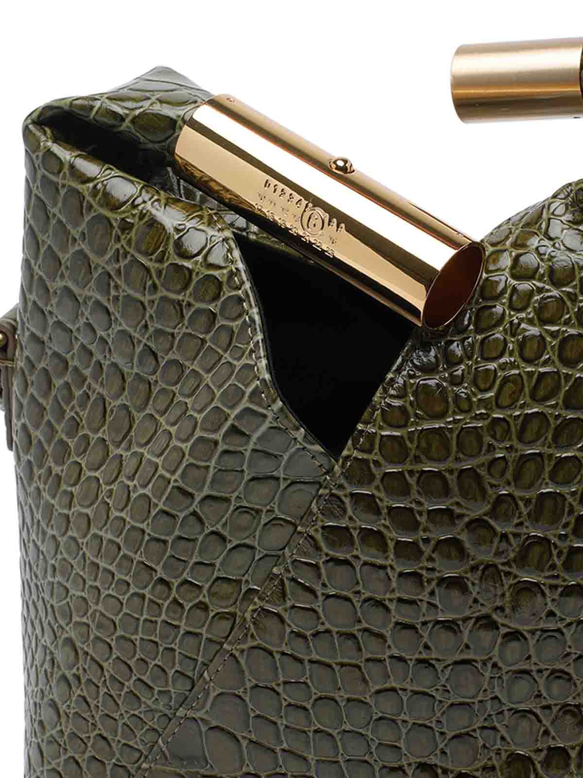 Mm6 maison margiela green small japanese crossbody bag, clip closure, 2 handle, adaptable strap, croco print
