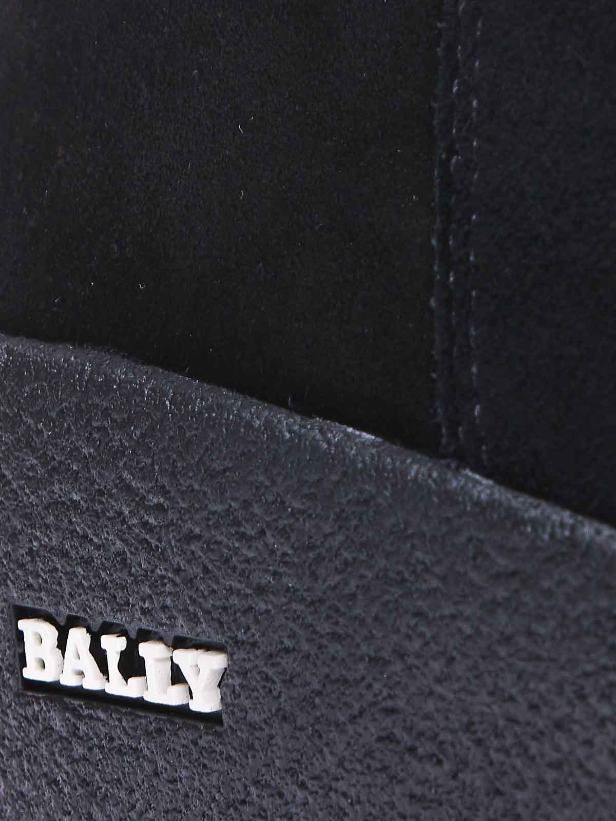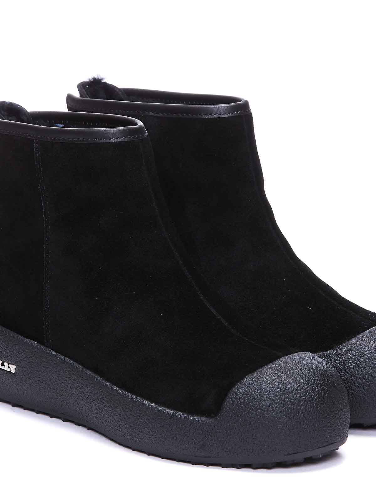 Bally black guard booties leather and suede upper zip closure on the back round toe lateral logo