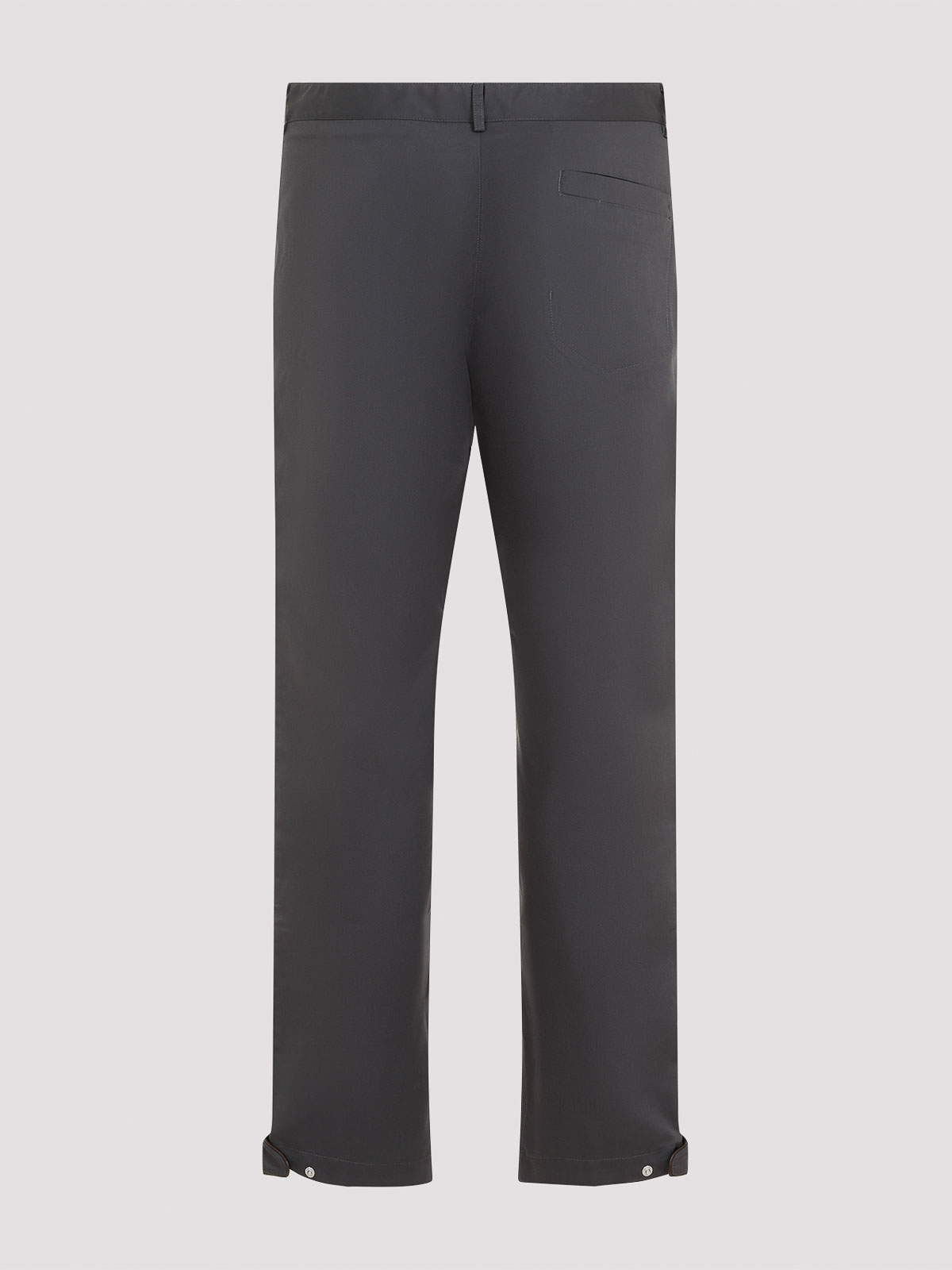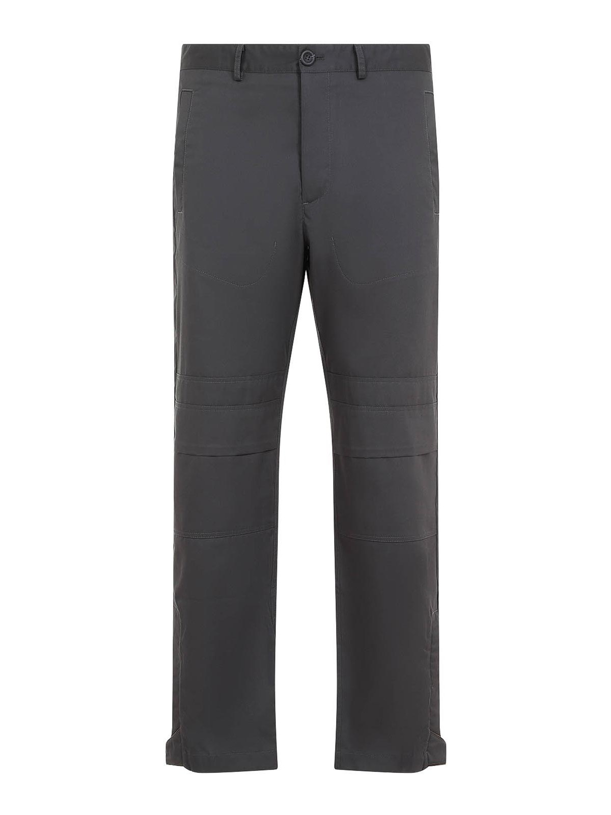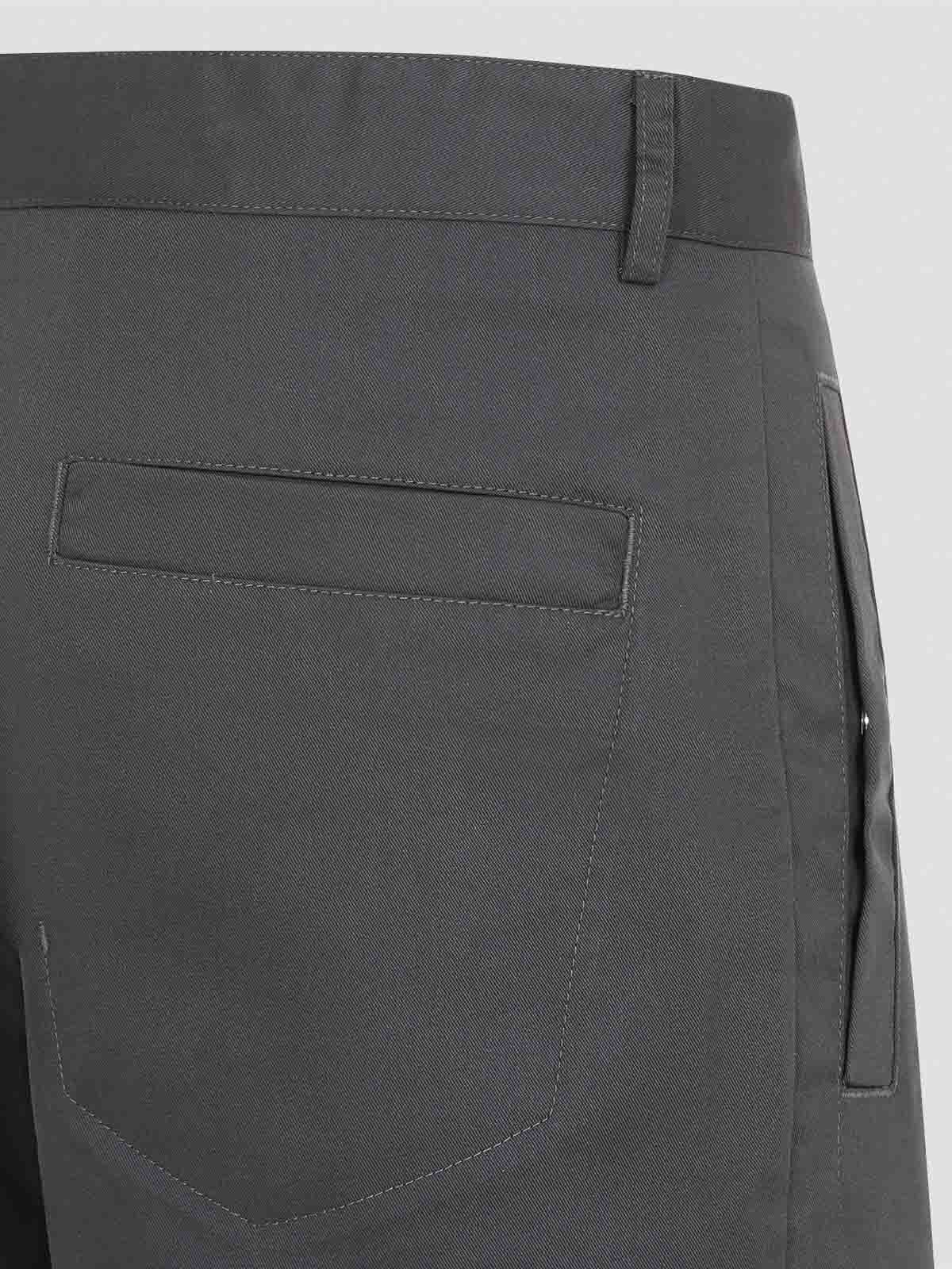 Ranra gunmetal grey gummi pants. crafted in polyester and cotton blend. front concealing zipped fastening, front buttoned fastening, belt loops, side pockets, back slit pocket, ankle-length, buttoned hem.